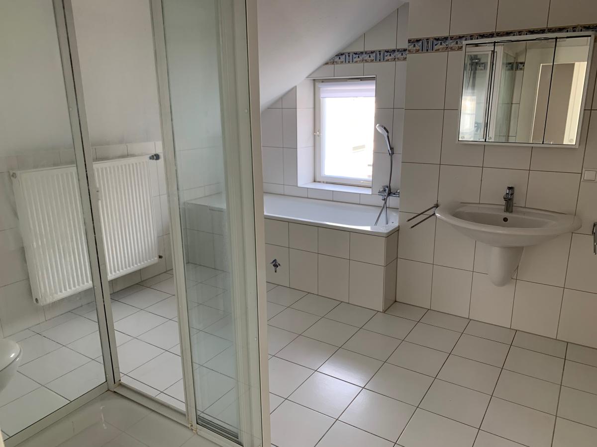 Des Weiteren verfügt die Wohnung über ein helles und zeitlos gehaltenes Bad mit Dusche, Badewanne, Waschmaschinenanschluss und Fenster.