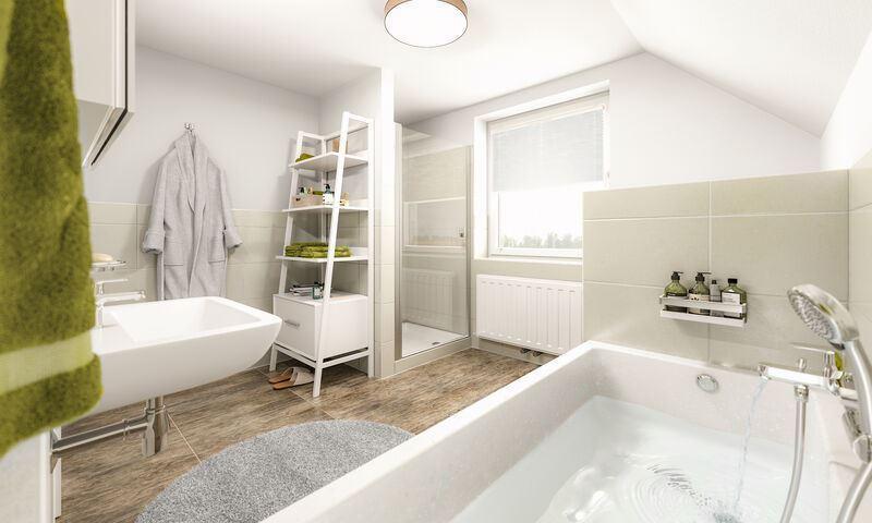 Auch die Küche bietet Ihnen viel Platz für das gemeinsame Kochen mit den Kindern oder Freunden. Die drei geräumigen Zimmer im Obergeschoss bieten genug Platz zur persönlichen Entfaltung, eine weitere Unterteilung dieser Etage ist möglich. Dieses Haus besitzt nicht nur Charakter und einen besonderen Charme, es ist obendrein äußerst flexibel. Für große Familien können 5 oder 6 Zimmer eingeplant werden. Auch das Hausdesign ist wandlungsfähig: ob modern oder im süddeutschen Stil – im Flair werden Ihre Familie und Sie sich wohlfühlen.