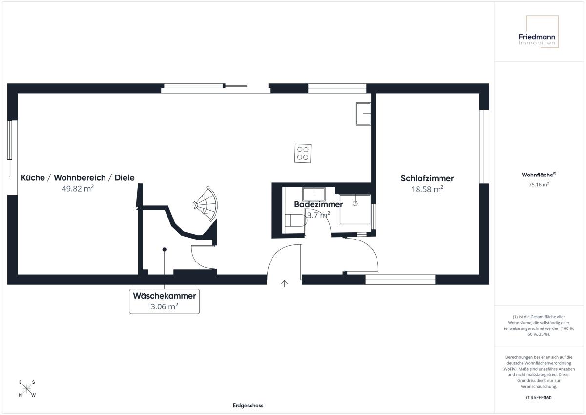 Die Wohnung wird bevorzugt an berufstätige Einzelpersonen oder Paare mit einem Haushaltsnettoeinkommen von mindestens 3.600 € vermietet.