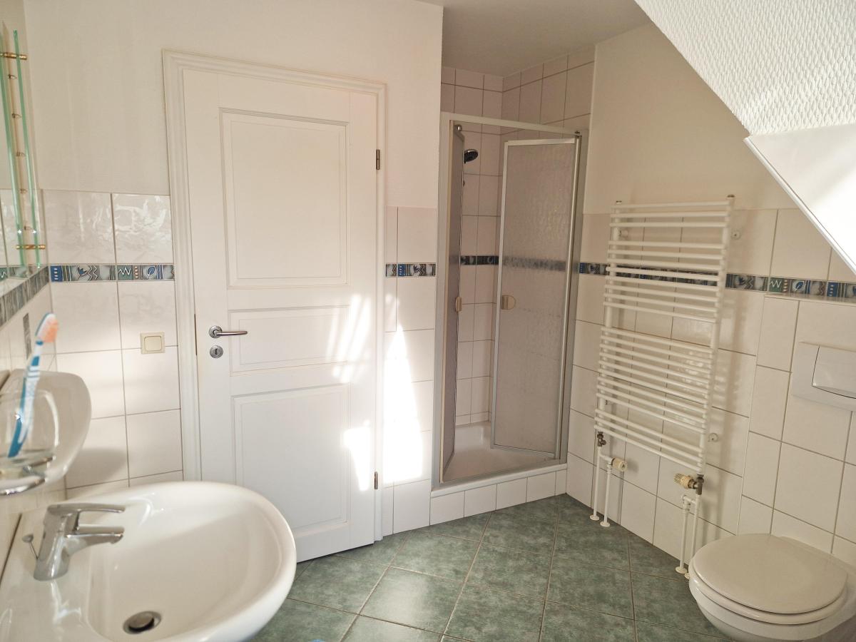 Das Dachgeschoss teilt sich aktuell in die Bereiche Wohnhaus und Ferienwohnung auf. Das Wohnhaus beinhaltet zwei weitere Zimmer. Hier gibt es verschiedene Verwendungsmöglichkeiten, da sie eine gute Größe aufweisen. Hobbies, Büro oder Schlafräume können hier eingerichtet werden. Ein zeitloses Duschbad rundet diese Etage ab. Der Teil der Ferienwohnung ist von einem separaten Außeneingang erreichbar und verfügt über ein Badezimmer, einen großzügigen Wohn- und Essbereich sowie zwei weitere Zimmer. Durch die Vermietung lassen sich zusätzliche Einnahmen generieren. Mietpreise, die in der Vergangenheit angesetzt wurden, erhalten Sie gern auf Nachfrage. Sie brauchen viel Wohnraum zum eigenen Bedarf? Auch das ist kein Problem, denn es besteht die Option das Erd- und geteilte Dachgeschoss zu vereinen und auf die Ferienwohnung zu verzichten. Es ließe sich hier auch ein Büro einrichten für Remote-Arbeitende oder Freiberufler.