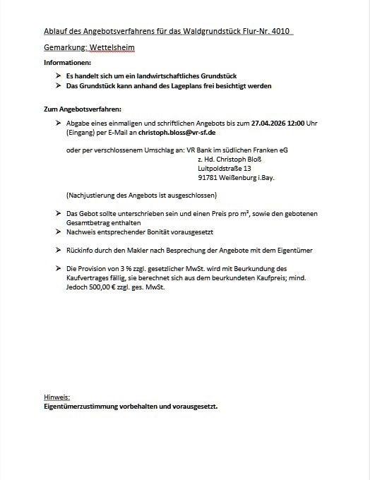Waldgrundstück in der Gemarkung Wettelsheim