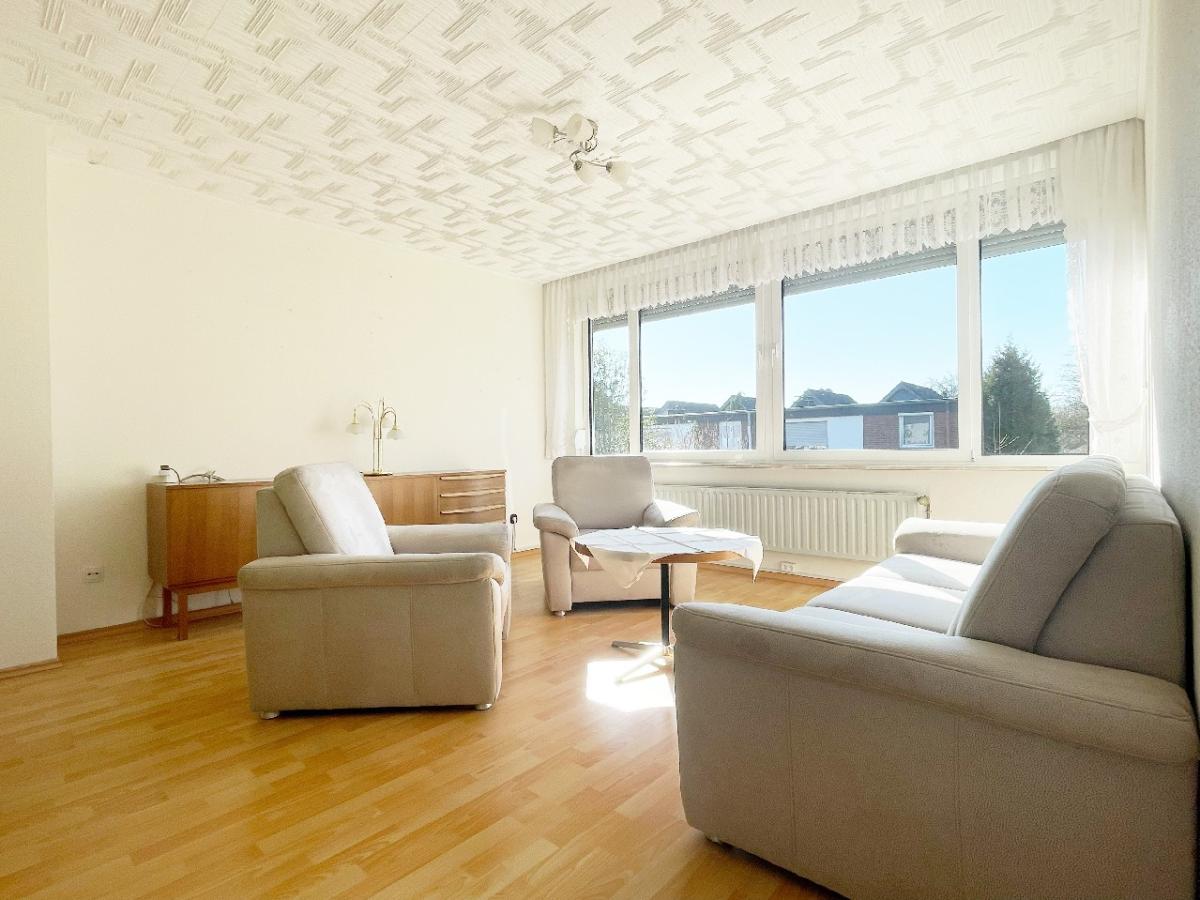 Es erwarten Sie eine geräumige Diele mit ausreichend Platz für Ihre Garderobe, eine gut geschnittene Küche mit kleiner Sitzgelegenheit, ein Gäste-WC sowie der Wohn- und Essbereich mit ca. 29 m² Wohnfläche. Von hier aus haben Sie einen direkten Zugang auf die teilüberdachte Terrasse, die nach Südwesten ausgerichtet und zusätzlich mit einer Sonnenmarkise ausgestattet ist.