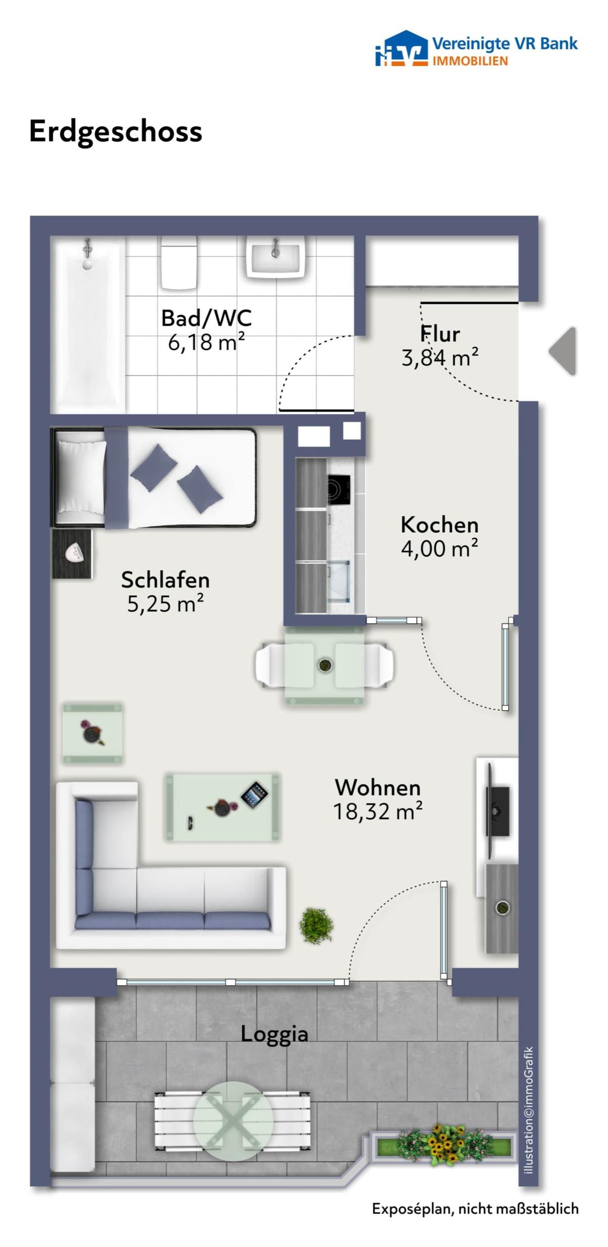 - Wohnfläche: ca. 43,5 m², genug für ein gemütliches Zuhause