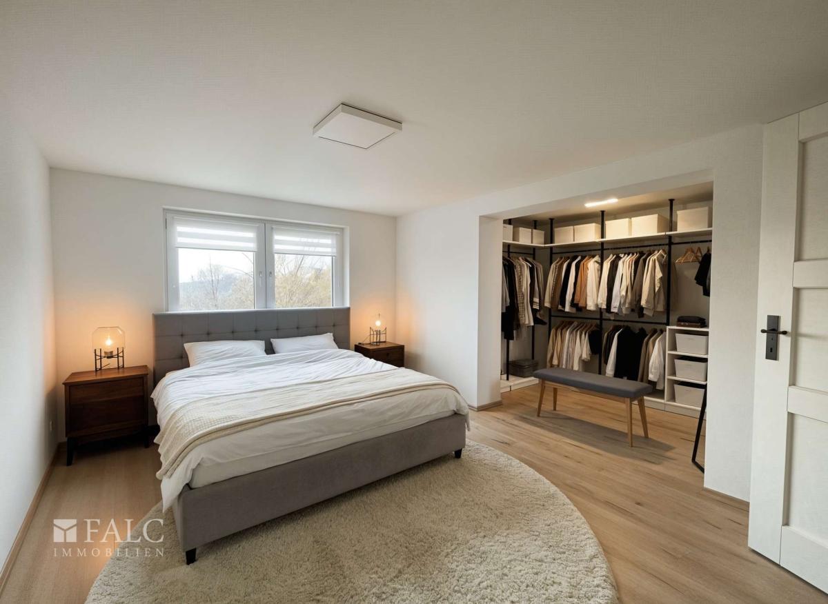 Über die Treppe erreichen Sie das Obergeschoss. Hier stehen weitere Zimmer zur Verfügung, die sich flexibel als Schlafräume, Kinderzimmer oder Arbeitsbereich nutzen lassen. Ein Schlafzimmer ist vorhanden, weitere Räume können je nach Bedarf eingerichtet werden. Zusätzlich gibt es im Obergeschoss einen weiteren Wohnbereich sowie eine weitere Küche, was unterschiedliche Nutzungskonzepte ermöglicht.