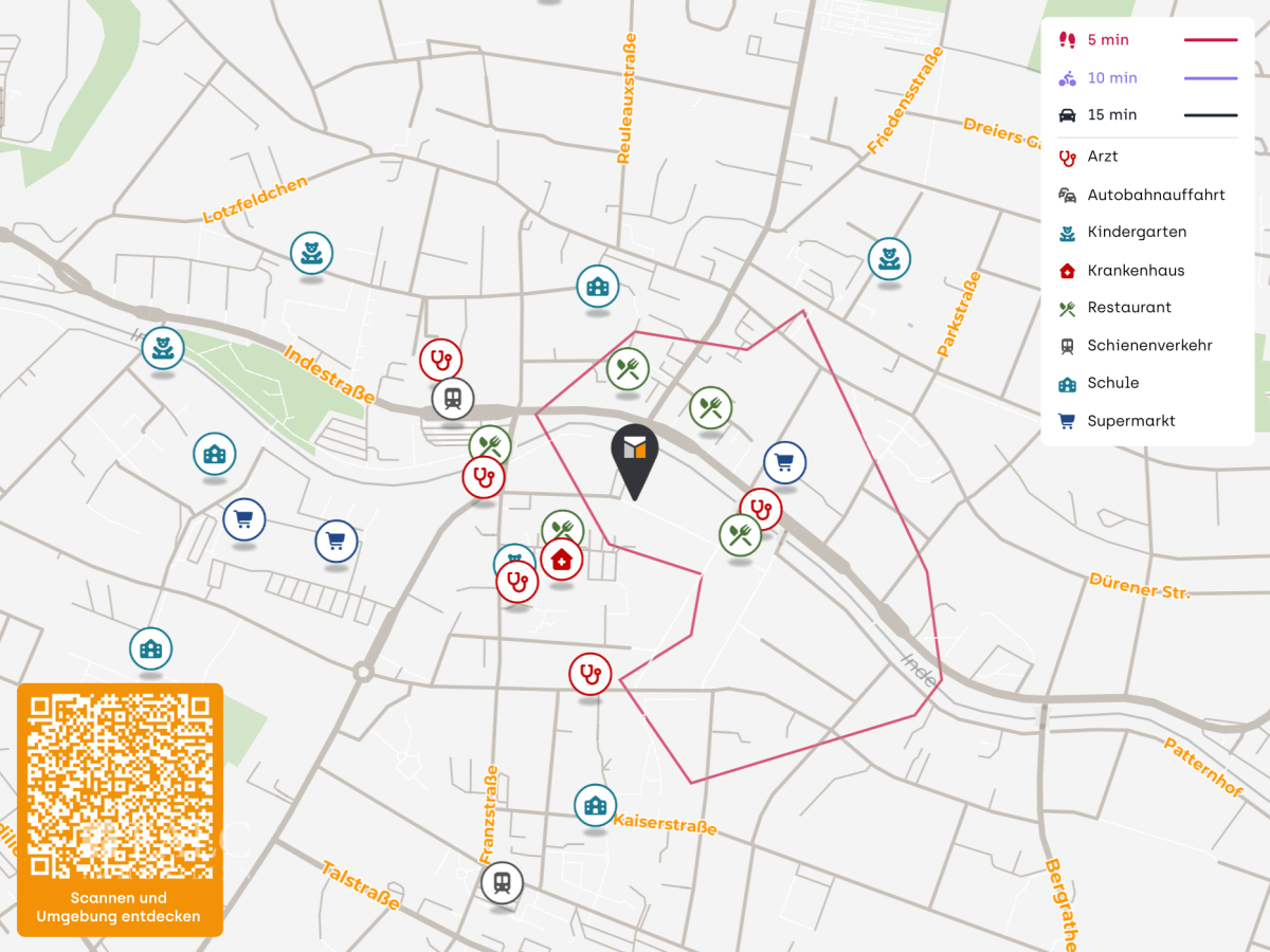 Auch das Thema Erreichbarkeit mit dem Auto ist gut abgedeckt: Die Autobahnen A4 und A44 sind im Raum Eschweiler zĂŒgig erreichbar und verbinden die Lage mit den Zentren der Region. FĂŒr ĂŒberregionale Reisen bieten sich die FlughĂ€fen Köln Bonn und DĂŒsseldorf als gut erreichbare Optionen an. ZusĂ€tzlich erleichtern mehrere E Ladestationen in der NĂ€he den Umstieg auf ElektromobilitĂ€t.