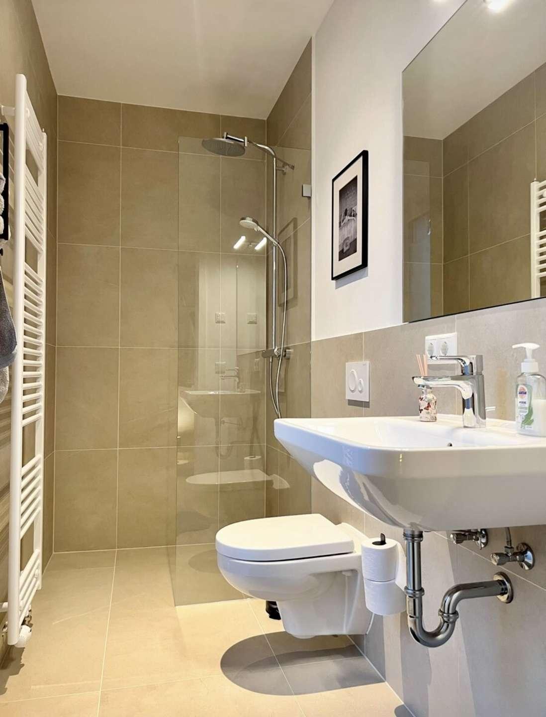 - Bad mit barrierefreier Dusche, Spiegel & Handtuchheizkörper