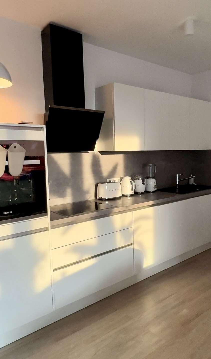 - Hochwertige und moderne Einbauküche mit weißen Fronten