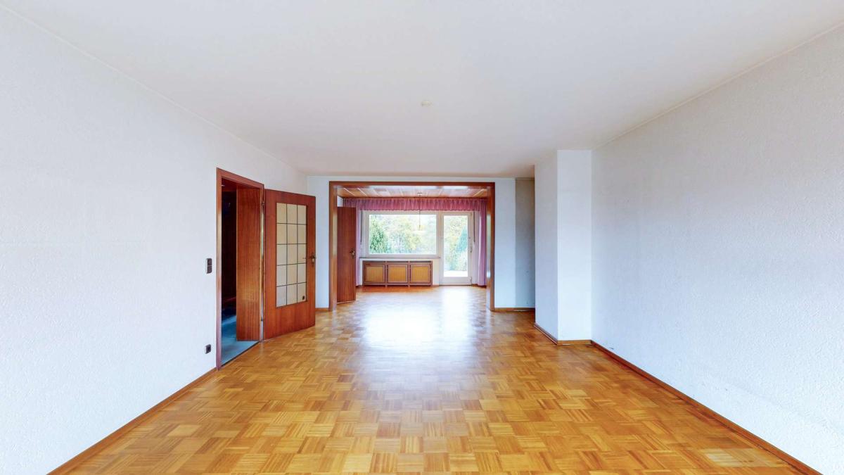 Das Einfamilienhaus wurde im Jahr 1970 erbaut und befindet sich in einer ruhigen Wohnlage von Ratingen-Breitscheid. Es ist voll unterkellert und bietet eine Wohnfläche von ca. 178 m², die sich auf drei Etagen verteilt. Aufgrund der Hanglage des Grundstücks liegt der Wintergarten im Souterrainbereich des Hauses.