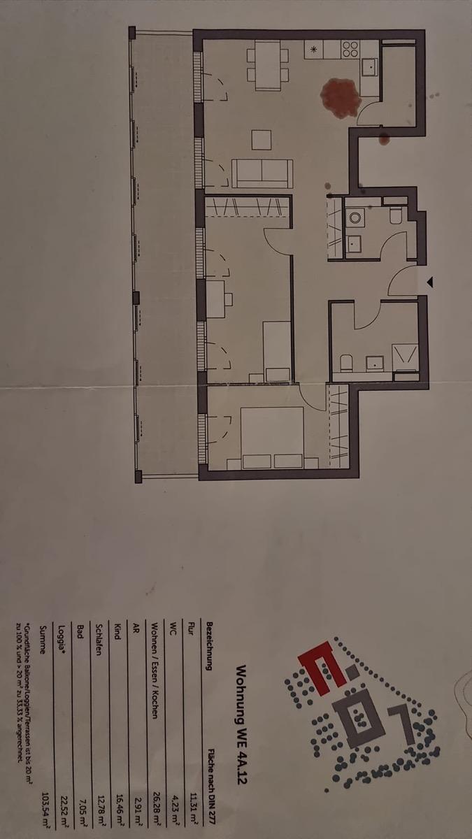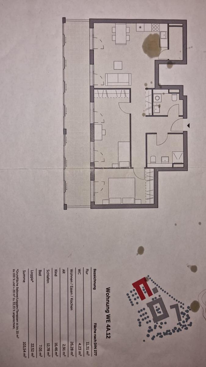 Unsere Wohnung verfügt über 103,54 m2 Wohnfläche und ist ab 01.08.2026 verfügbar,