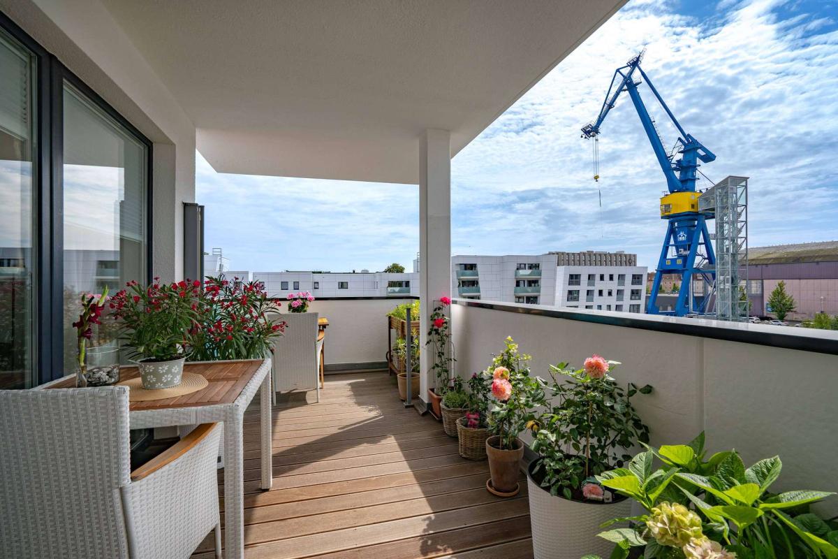 Wohnen in der Rostocker Hafencity mit Balkon und Panorama auf die Warnow
