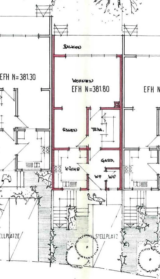 Vom Flur aus gelangen Sie ebenfalls zum schönen Wohn-Essbereich. Eine breite Fensterfront mit Balkontüre gibt Ihnen eine schönen Ausblick in den Garten und auf den Balkon. Vom Balkon führt eine Treppe in den Garten. Das Erdgeschoss ist komplett gefliest. Die Fußbodenheizung sorgt für angenehme Wärme.