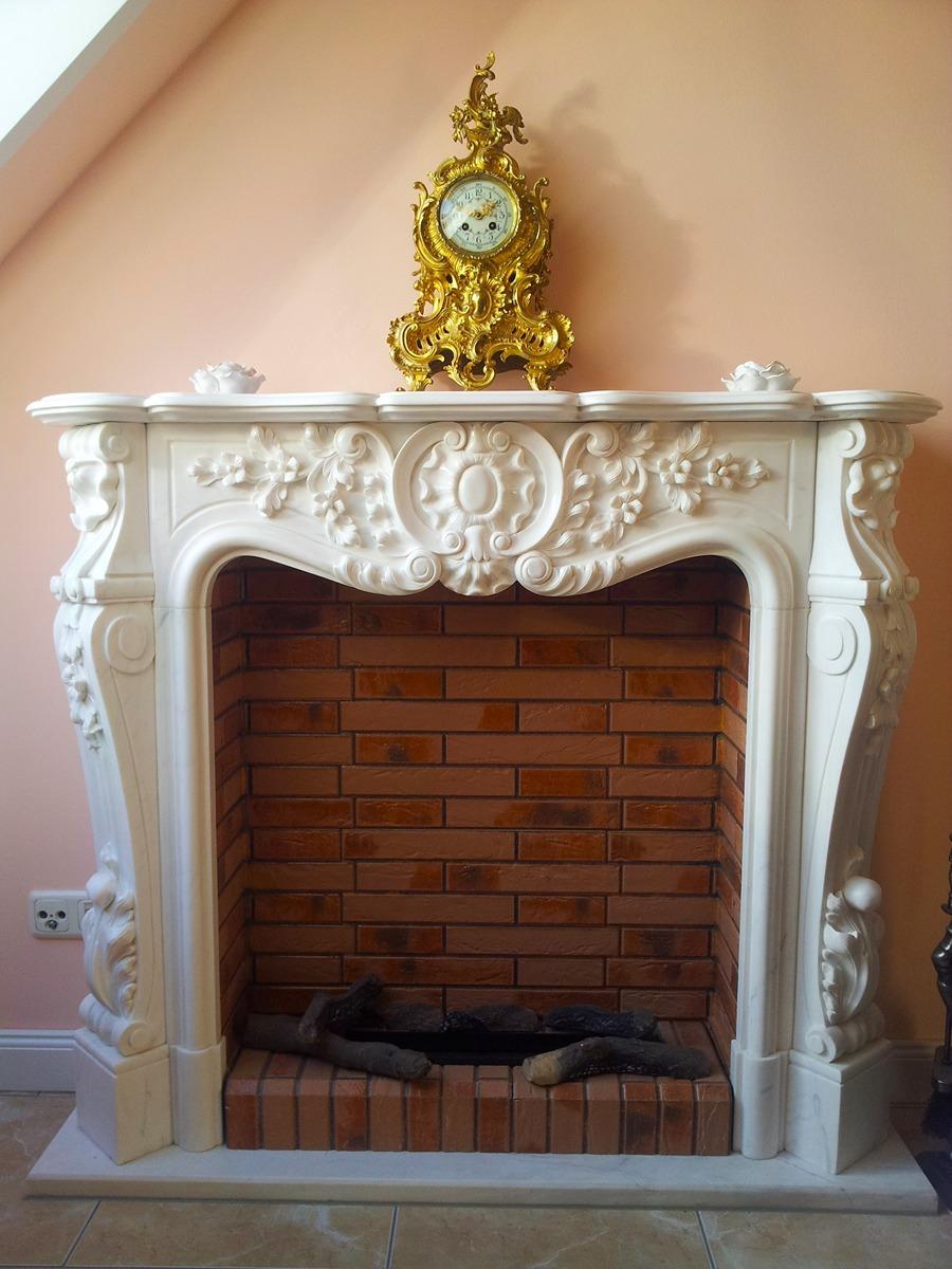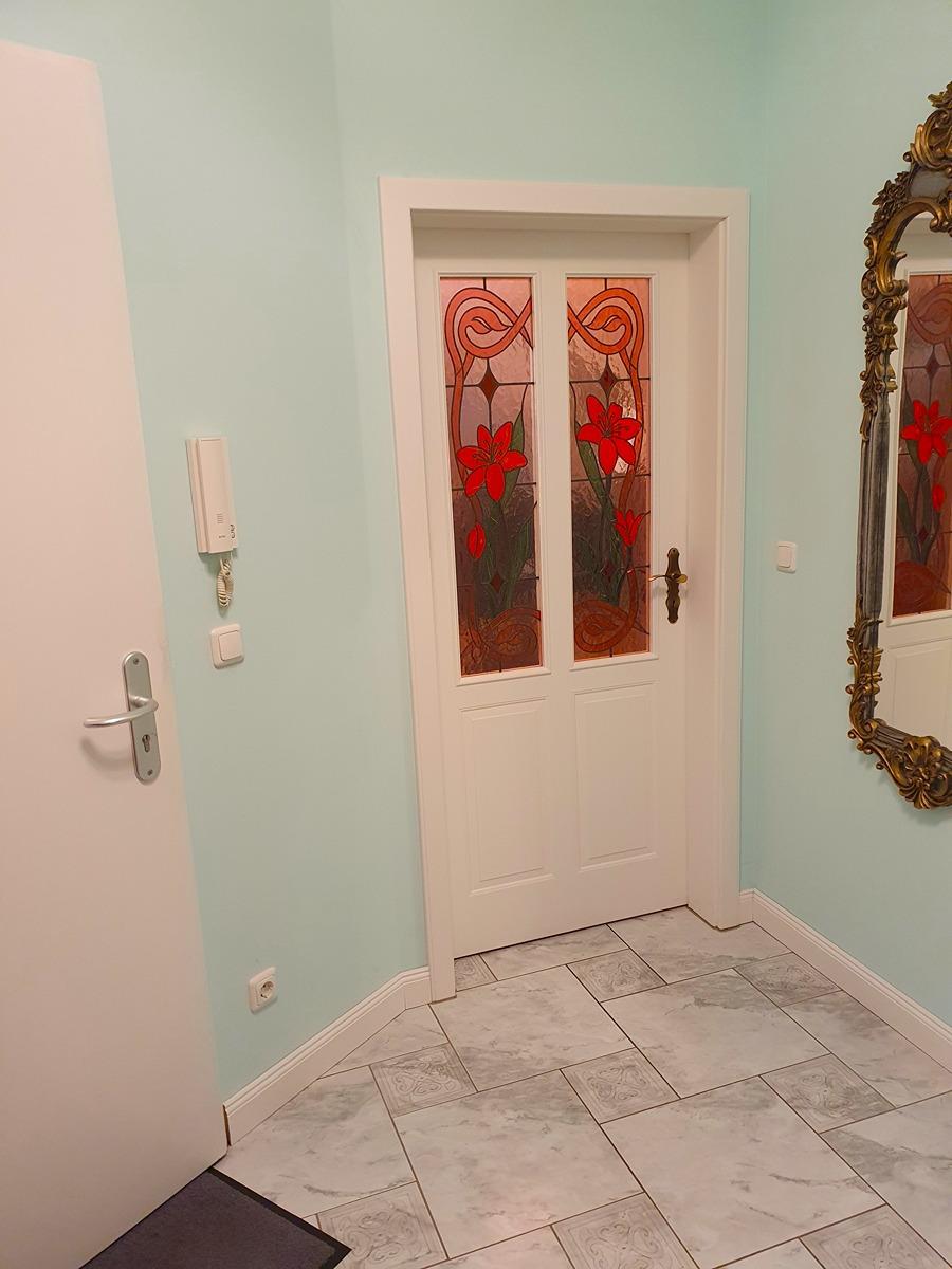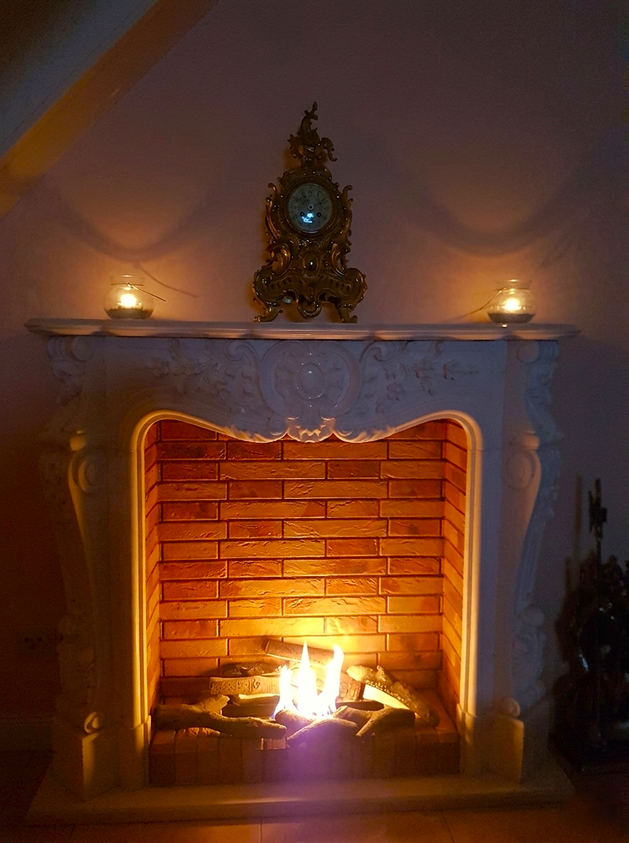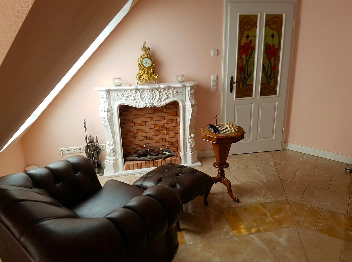- Marmor-Kamin, Stucco Veneziano, Bleiverglasung