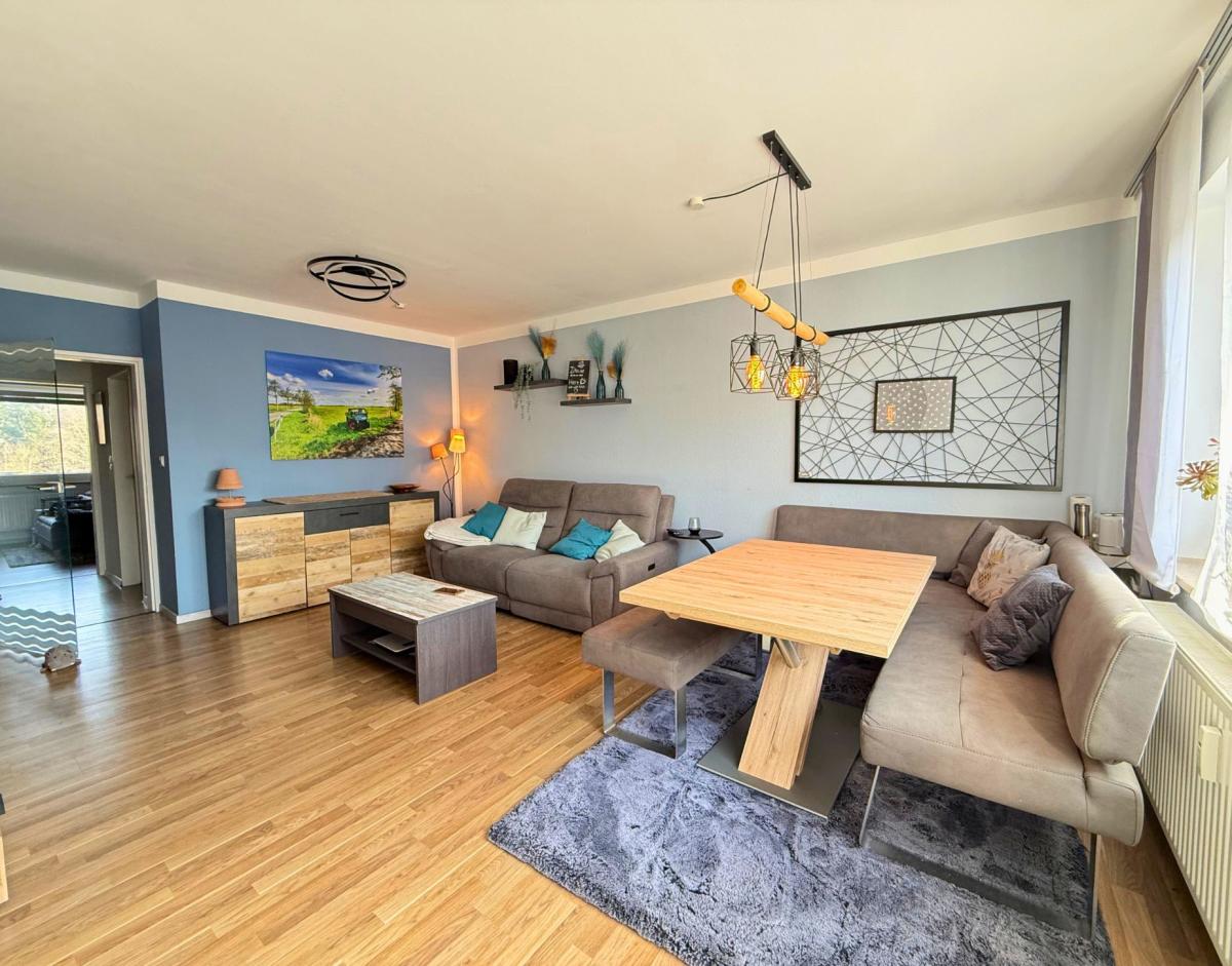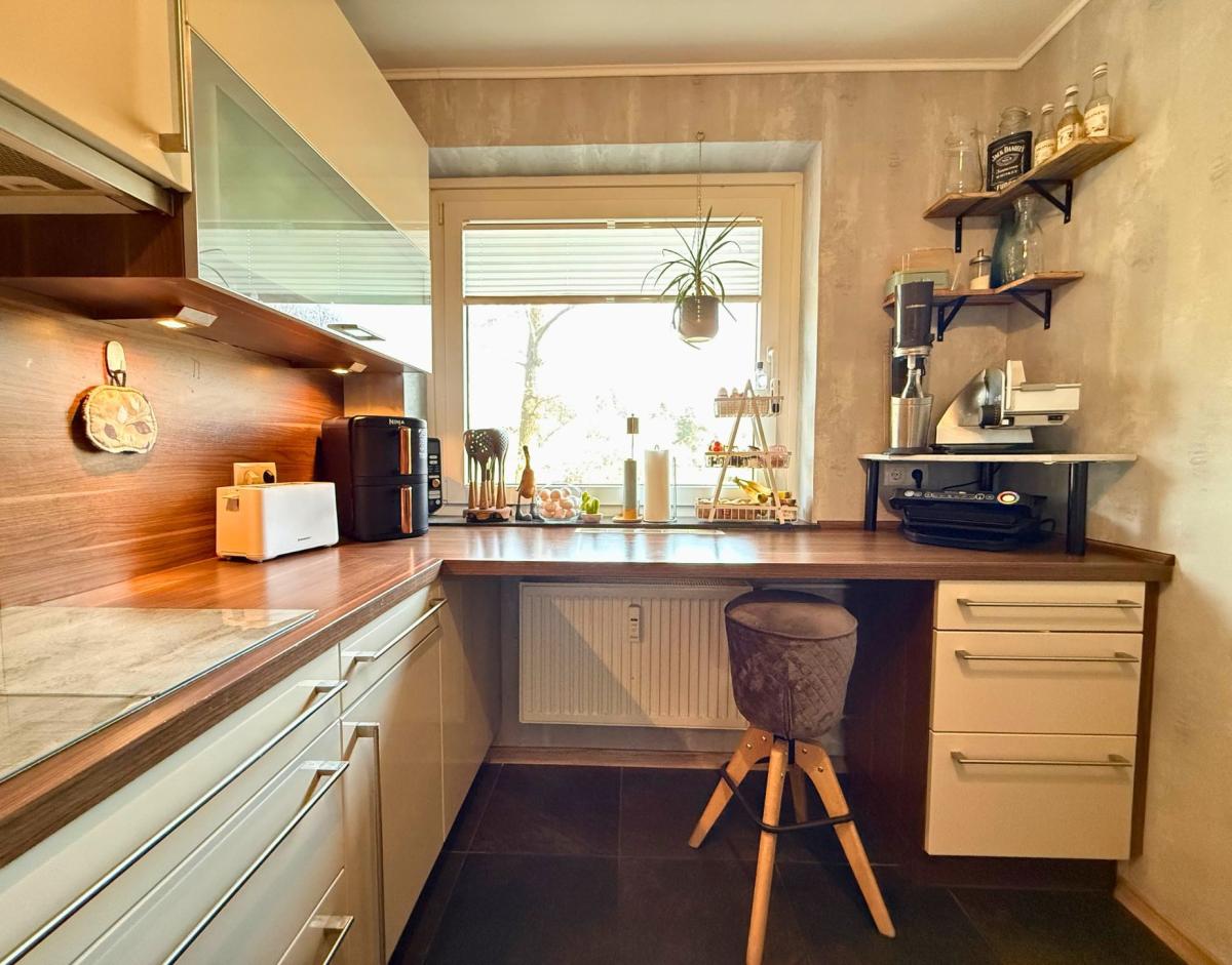 Eine helle, sehr gepflegte Wohnung in schöner Lage, mit vielen praktischen Details und einem Blick auf die Seeve, der jeden Tag ein kleines bisschen besonderer macht.