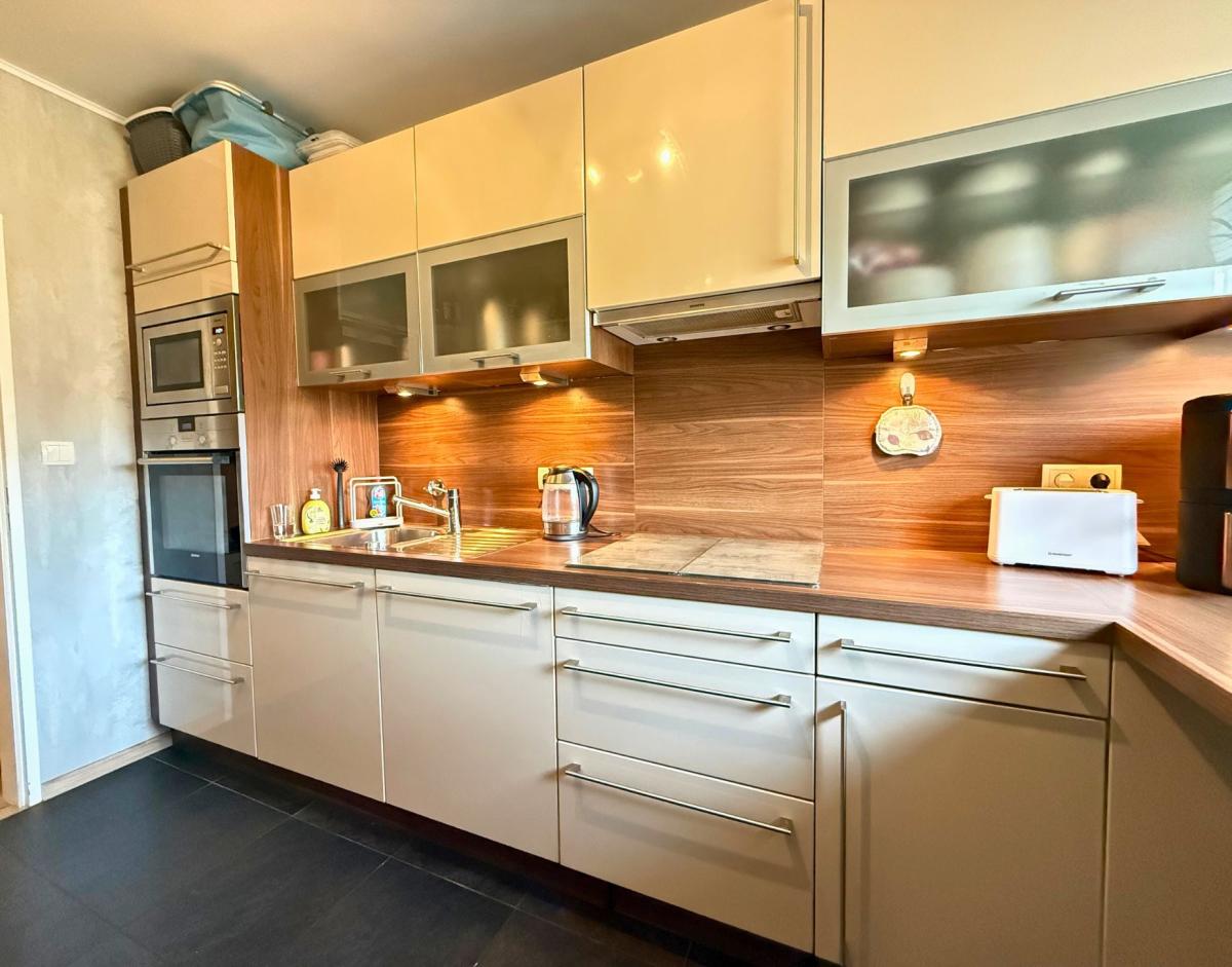 Wenn du aus dem Fenster schaust, blickst du direkt auf den Seevekanal. Ein ruhiger, schöner Anblick, der den Alltag gleich ein bisschen entspannter macht. Die moderne Einbauküche gehört selbstverständlich zur Wohnung dazu und ist perfekt, um hier direkt loszulegen.