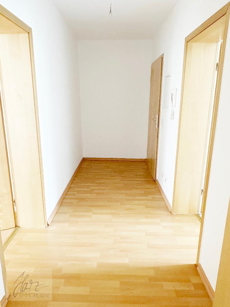 Man betritt die Wohnung über einen einladenden Flur mit hellem Laminatfußboden, der mit seinen 6,02 m² ausreichend Platz für eine Garderobe und zusätzlichen Stauraum bietet. Von hier aus sind alle Räume bequem erreichbar, was für eine angenehme und praktische Wohnstruktur sorgt.