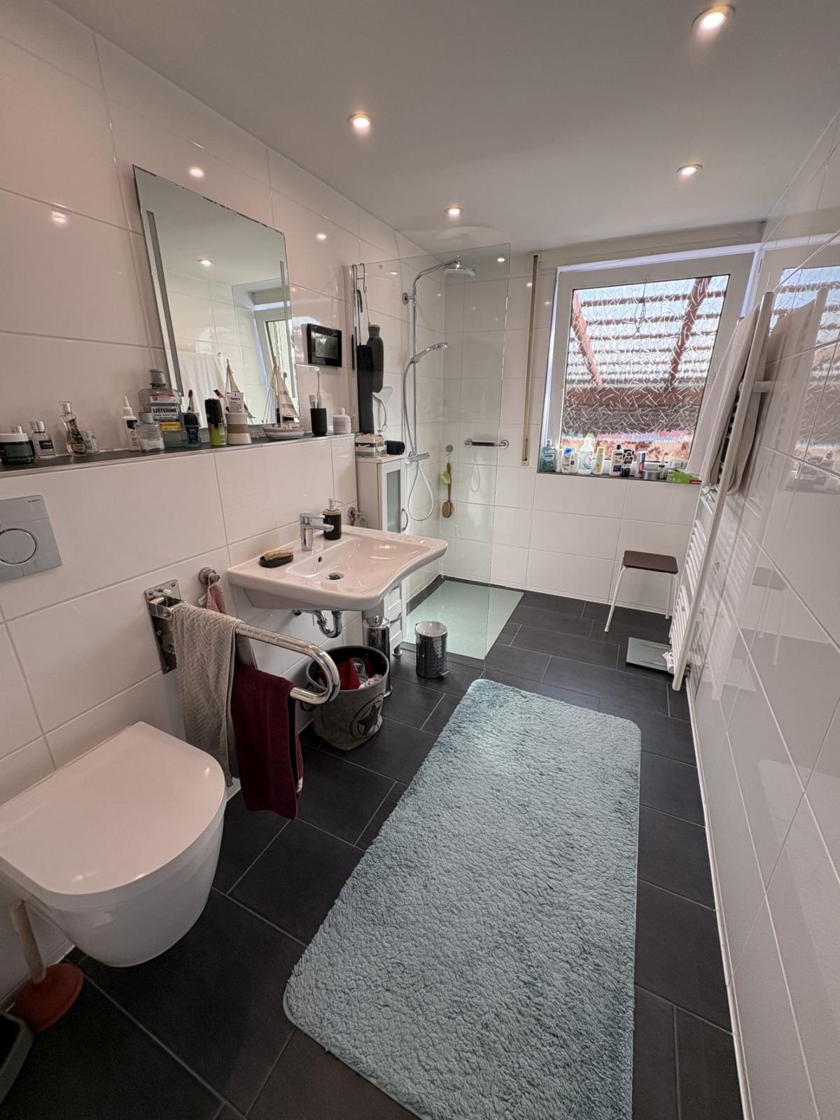 Derzeit wird die Immobilie von zwei Generationen genutzt, weshalb sich im Obergeschoss eine zusätzliche Küche befindet. Die obere Einheit ist jedoch ausschließlich über den Flur des Erdgeschosses erreichbar und nicht vollständig in sich abgeschlossen. Dies bietet ideale Voraussetzungen für das Mehrgenerationenwohnen oder für eine große Familie, die Wert auf großzügige Platzverhältnisse und flexible Nutzungsmöglichkeiten legt.