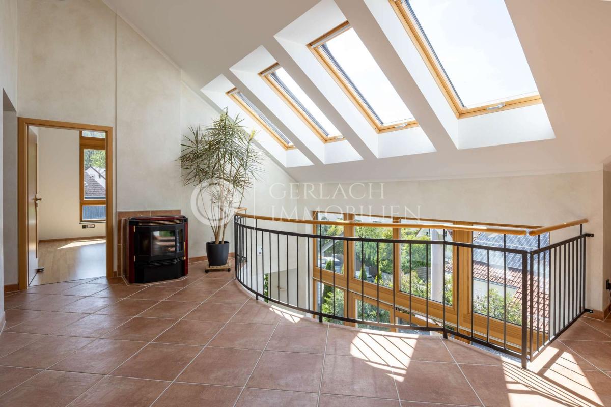 Galerie mit Kaminofen, Schlafzimmer mit Ankleide und Balkon, 3 Schlaf-/Kinderzimmer, Badezimmer mit Dusche und Wanne
