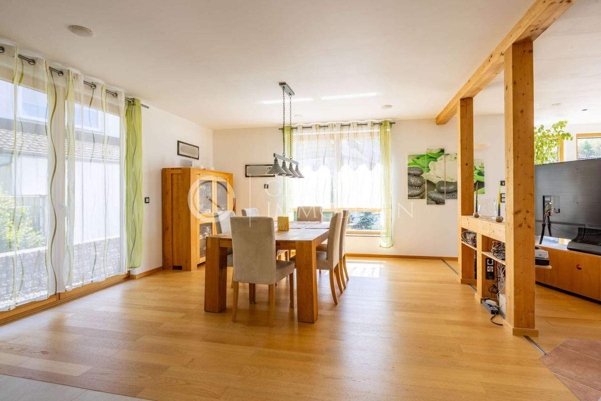 Die Ausstattung des Hauses zeigt Liebe zum Detail und einen hohen technischen Anspruch: energieeffiziente Haustechnik mit BUS-System, Fußbodenheizung, Kamin- und Pelletofen, Photovoltaik und Solarthermie, zentrale Staubsaugeranlage, Lüftungssystem, elektrisch gesteuerte Rollläden, Zisterne, Wallboxen und vieles mehr. Alles ist auf Komfort und Nachhaltigkeit ausgelegt – eine Kombination, die man selten findet.