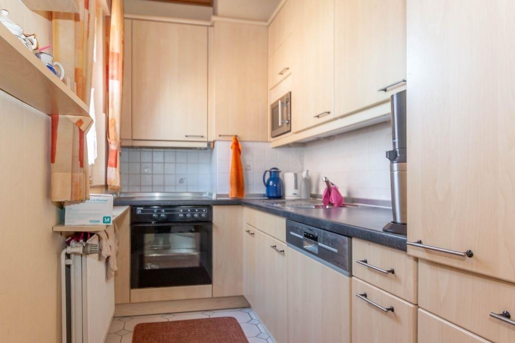 Die Küche ist kompakt gehalten und bietet eine funktionale Grundausstattung.