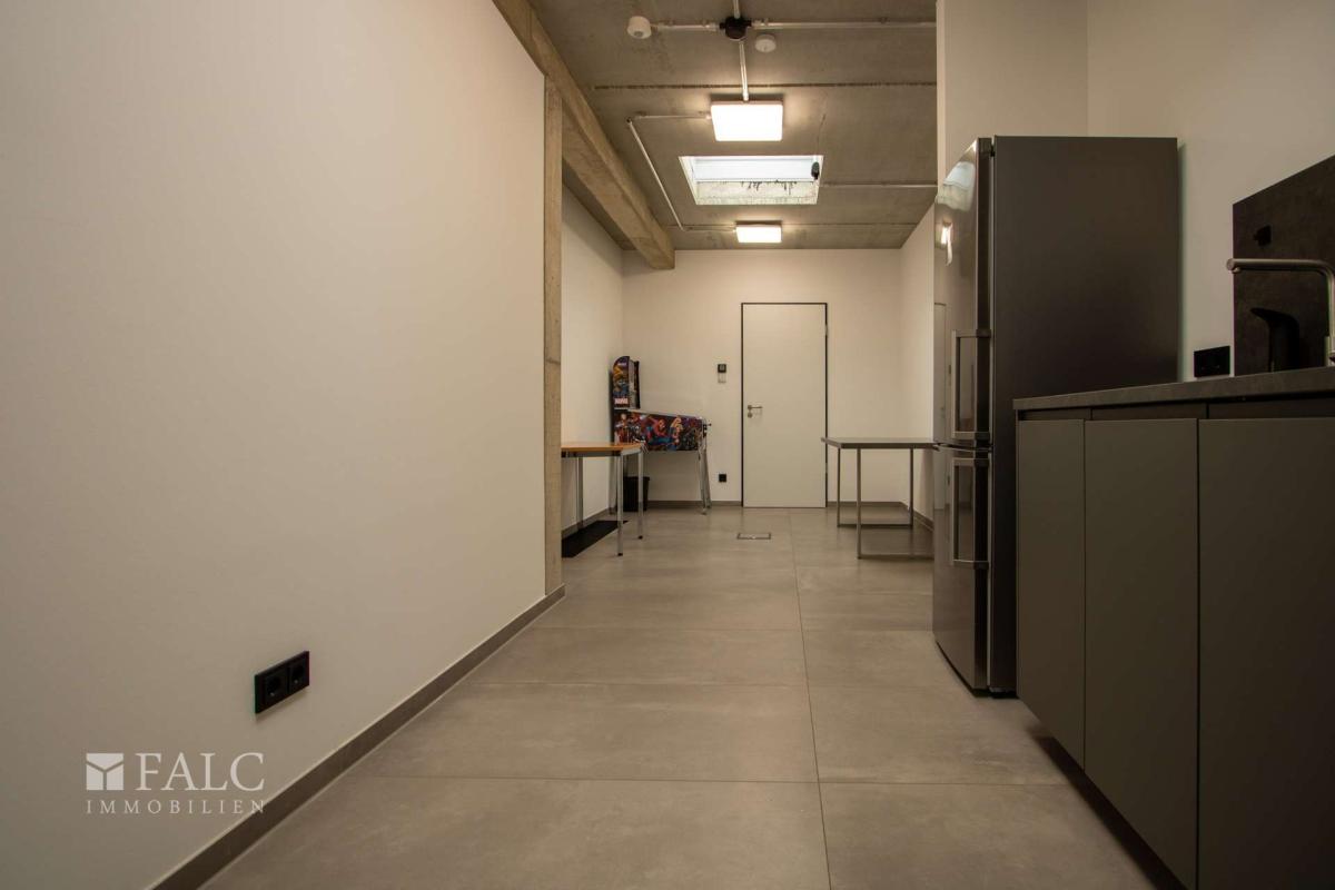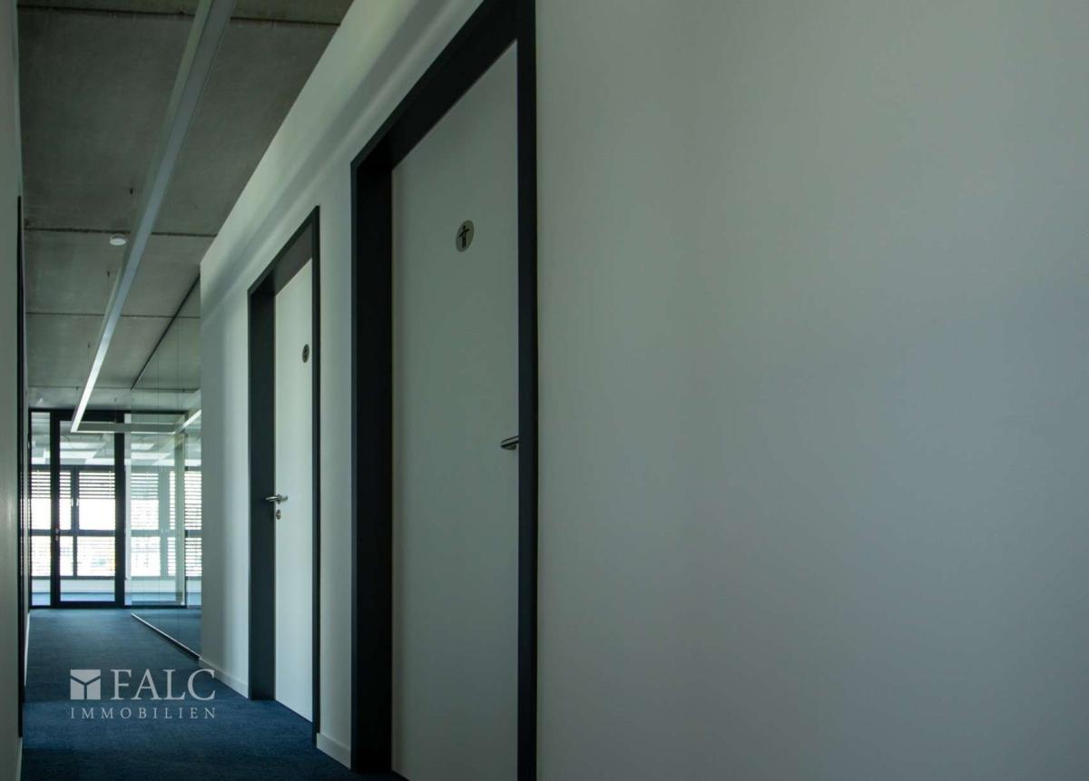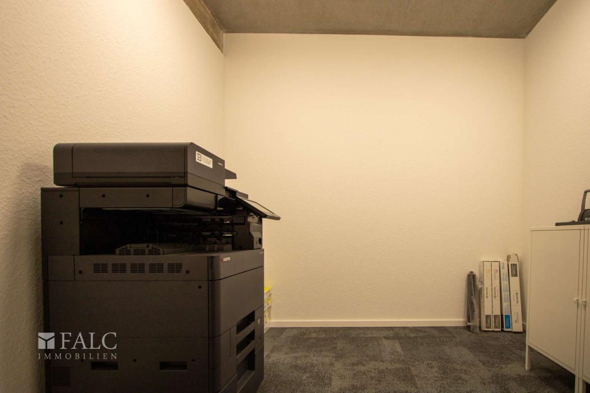 Großer, heller Empfangsbereich, 3 Einzelbüros, 2 helle, transparente Besprechungsräume und ein über 68 m² großes Großraumbüro (auch teilbar), Küchenbereich mit Personalaufenthaltsraum, Abstellraum, Archivraum und jeweils ein separater Server- und Kopierraum. Die Räume sind mit strapazierfähigem, modernem Teppichfliesboden ausgestattet. 1 Damen WC und 1 Herren WC. Der Fußboden der Nassräume ist gefliest, die Wände sind in Teilbereichen mit modernen Wandfliesen belegt.