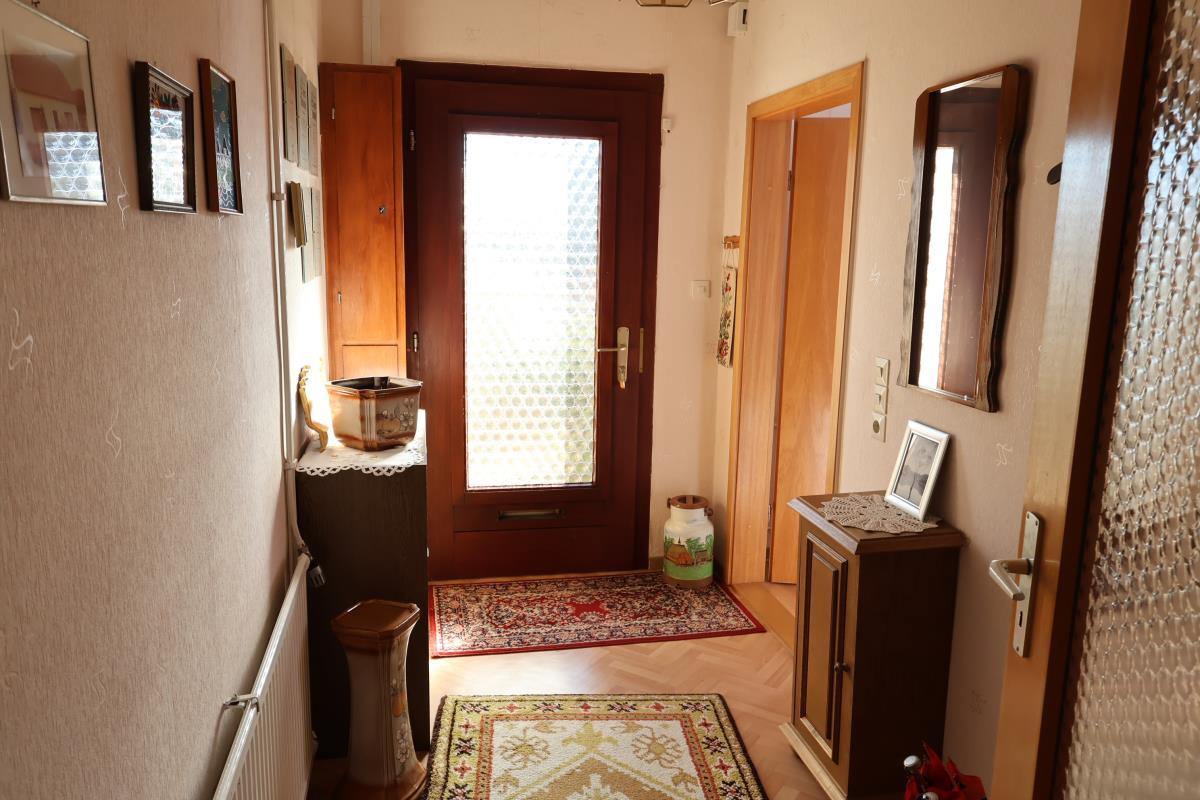 Im Erdgeschoss des vorderen Bereichs des Hauses sind Flur, Schlafzimmer, Wohnzimmer mit Parkettboden sowie Küche mit Vorratsraum vorhanden. Im Anbau befinden sich das Bad (im Jahr 2004 modernisiert), der Hauswirtschaftsraum sowie eine Werktstatt.