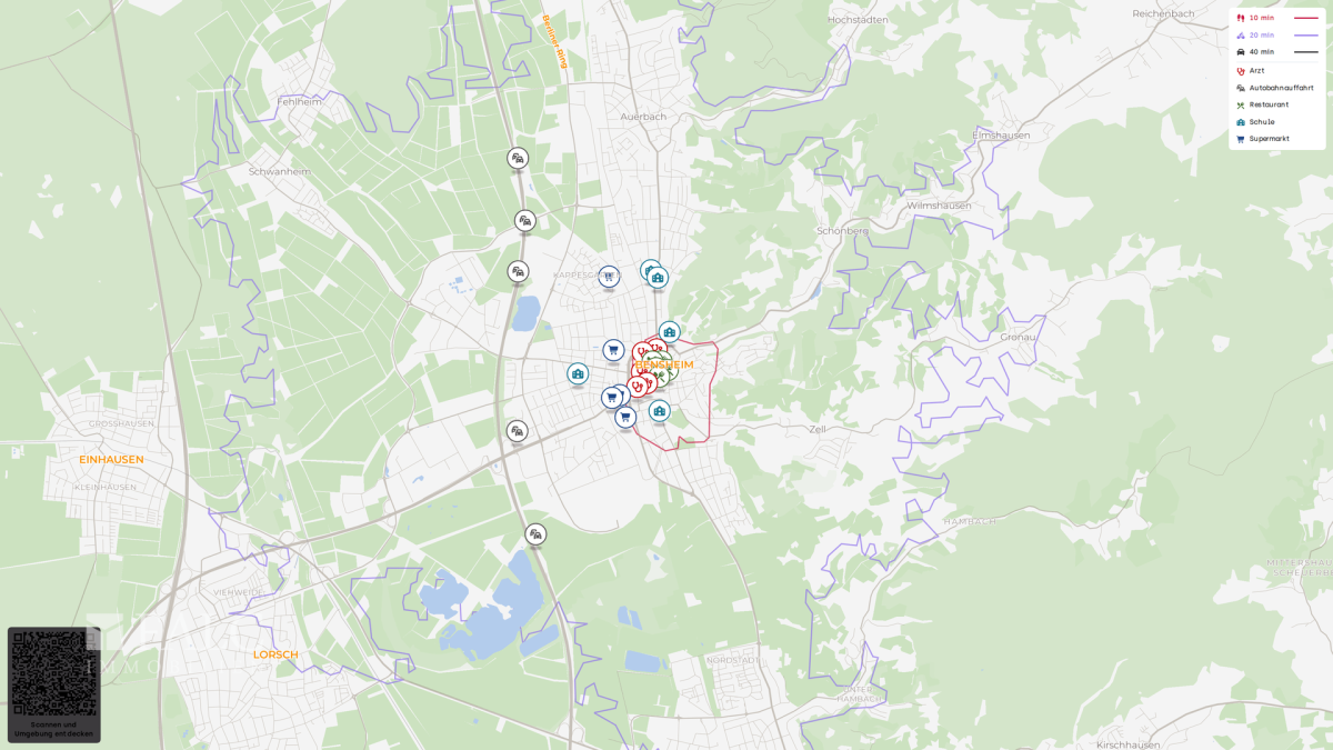 Auch die Anbindung überzeugt: Der Bahnhof Bensheim ist je nach genauer Lage in wenigen Minuten erreichbar und bietet eine gute regionale und überregionale Verbindung. Mit dem Auto sind die Autobahnen A5 und A67 zügig angebunden. Der Flughafen Frankfurt am Main ist in etwa einer knappen Stunde Fahrzeit erreichbar und damit für Geschäftsreisen oder Wochenendtrips gut planbar.