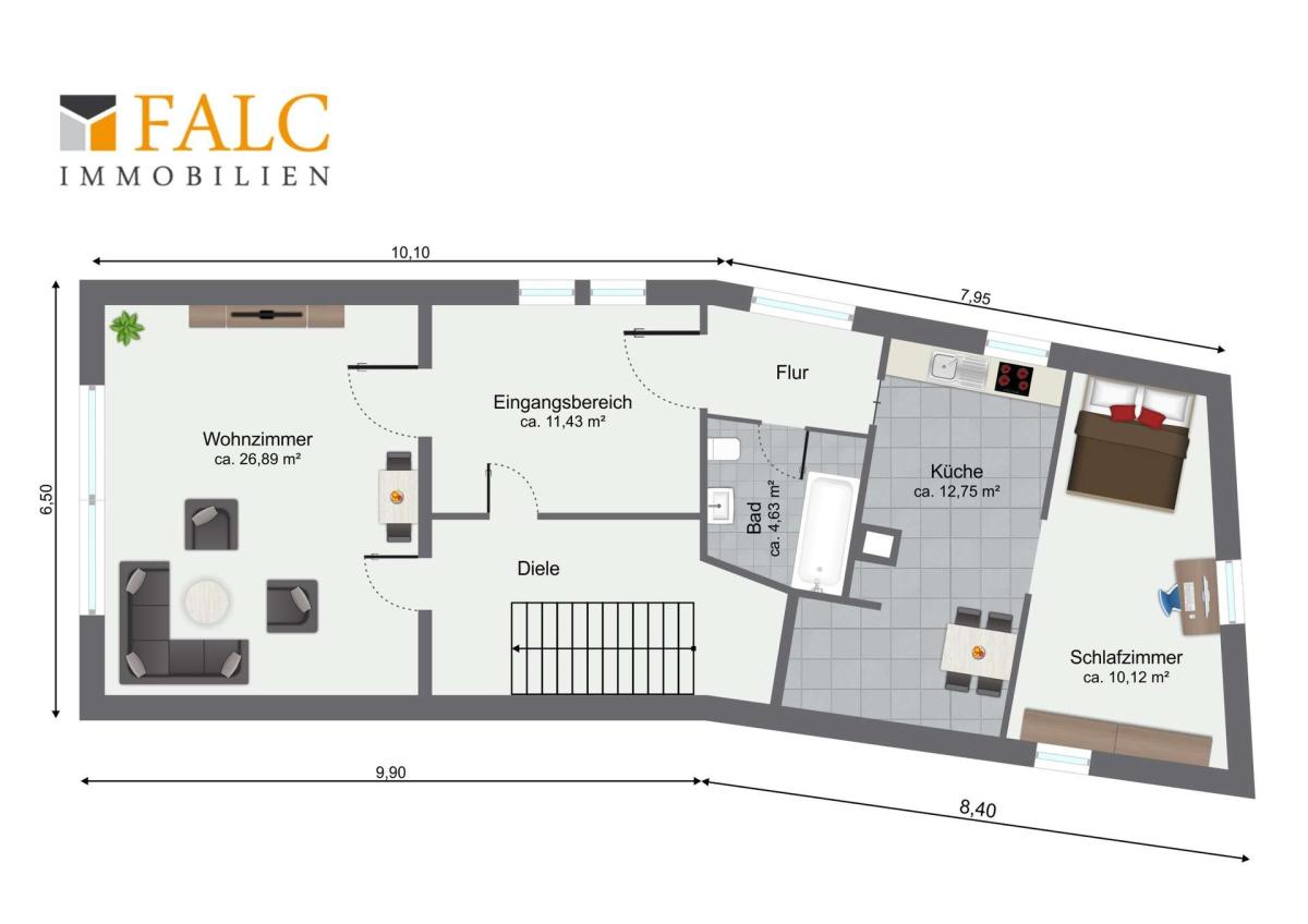 Diese ansprechend gegliederte Wohnung überzeugt durch eine klare Raumstruktur, praktische Funktionalität und Flexibilität in der Nutzung – ideal für alle, die ihren nächsten Lebensabschnitt gestalten möchten, beispielsweise als erste eigene Wohnung.