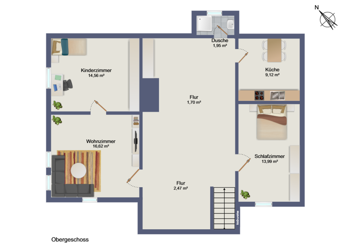 - Zwei Badezimmer: Beide Bäder sind funktional mit modernen Duschkabinen ausgestattet (Vermeidung von Engpässen im Familienalltag).