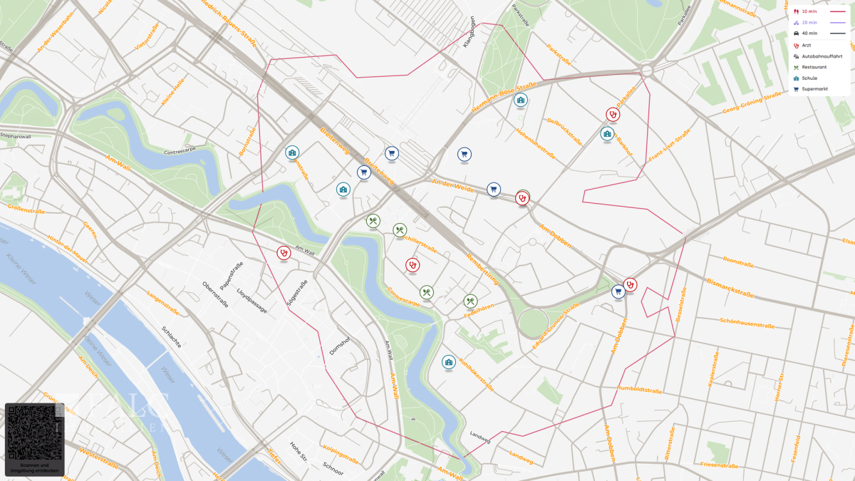 Die Wohnung liegt in einem urban geprägten Bremer Umfeld, in dem sich Alltag und Freizeit unkompliziert verbinden lassen. Für den schnellen Einkauf sind mehrere Supermärkte in der Nähe, sodass Besorgungen auch spontan gut machbar sind.