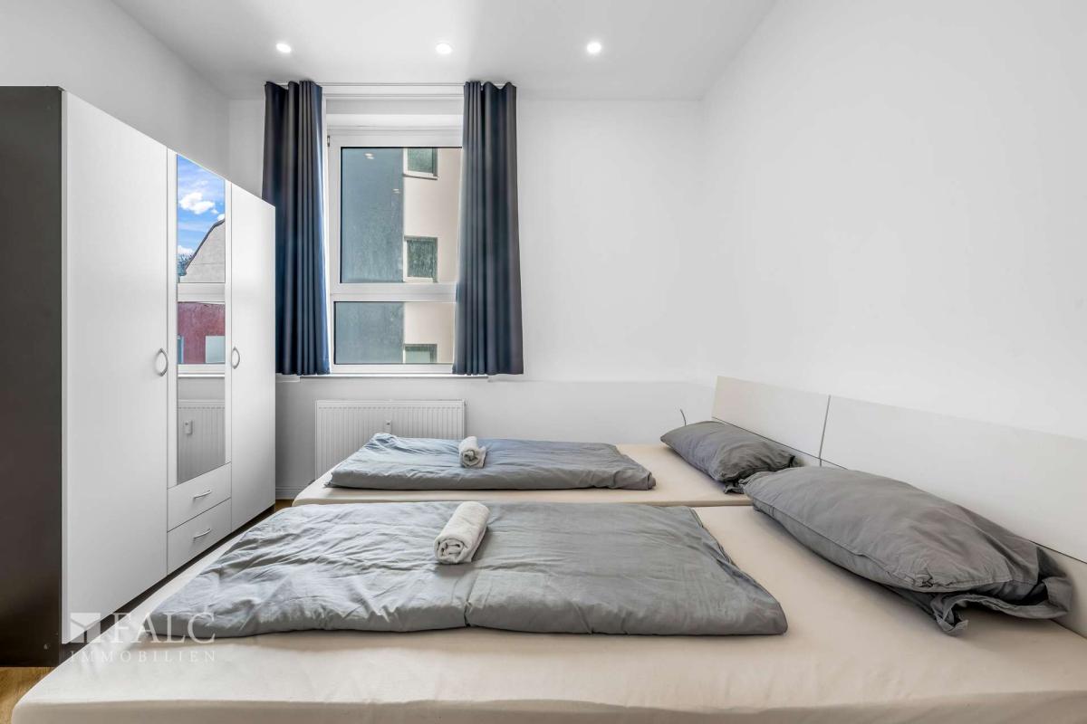 Die Einheit befindet sich im 1. Obergeschoss und wird vollständig möbliert inklusive Einbauküche verkauft, ideal für einen sofortigen Start in die Vermietung.