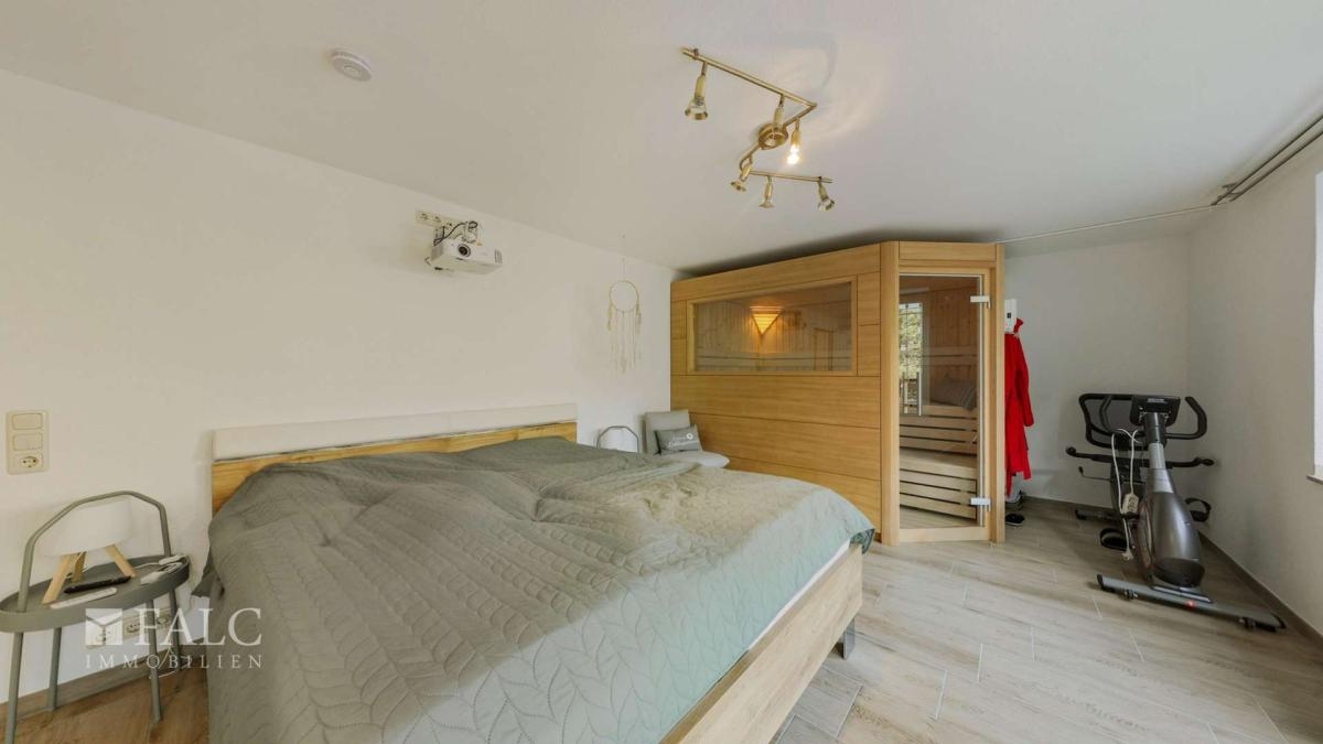 - Kellergeschoss mit Kinderzimmer, Büro, Sauna, Bad mit Dusche, Heizungsraum, Hauswirtschaftsraum, Vorratsraum