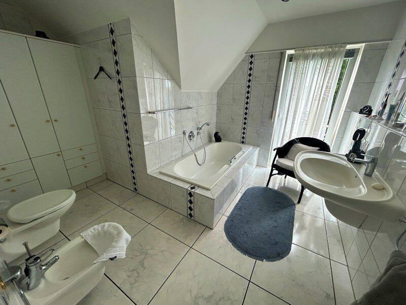 Aussstattung: Gasheizung (Bj. 2004) Fußbodenheizung, Lüftungsanlage im Wohnbereich, Klimaanlage im Schlafzimmer, Kunststofffenster mit 2-fach Verglasung, elektrische Rollläden im EG, elektrische Garagentore, etc.