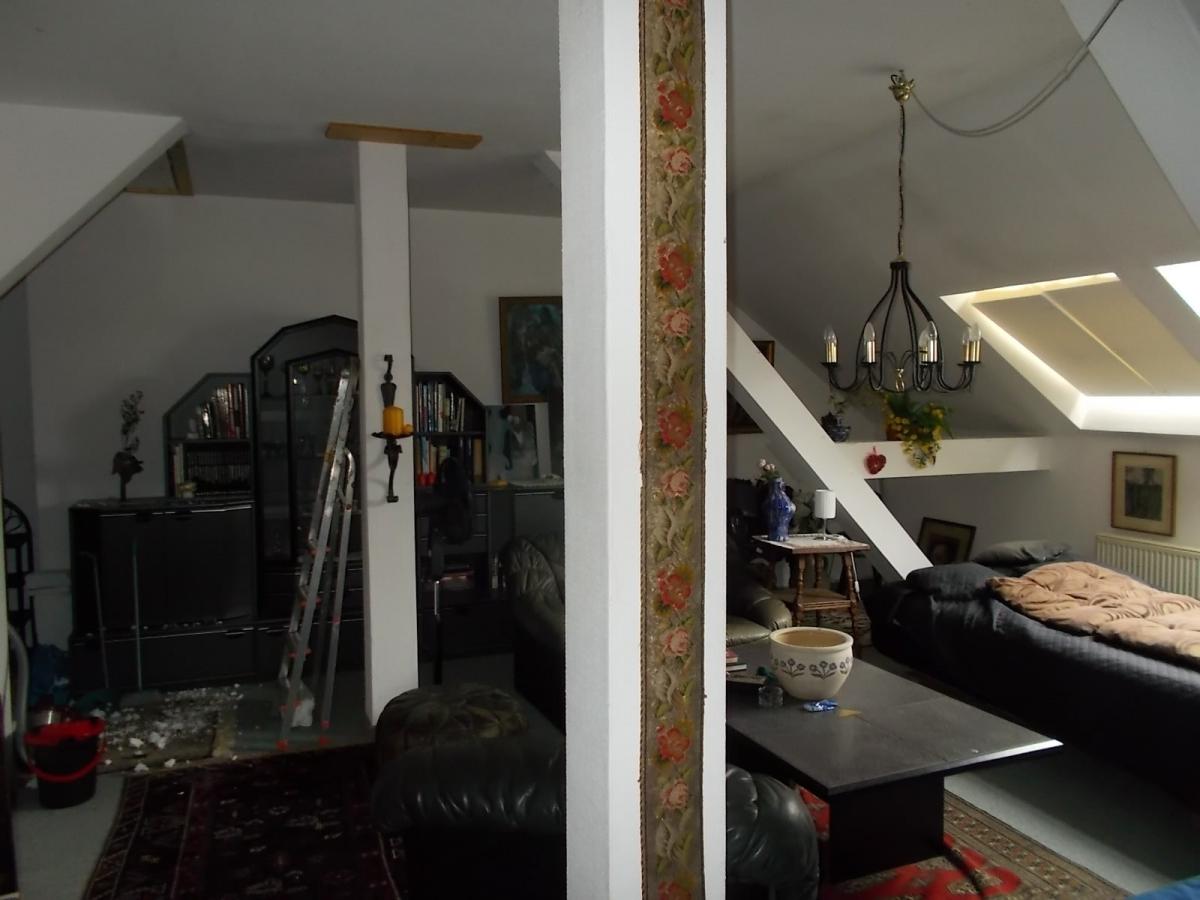 Im Nebenhaus befinden sich 2 separat zugängliche Wohnungen. Eine ist aktuell vermietet. Das Haupthaus besteht aus einem gewaltigen Untergeschoss und nicht minder eindrucksvollen Räumlichkeiten in den Wohnetagen. Schon der Dielen-Essbereich hat etwas von einem Schloss und das nicht minder im Wohnzimmer, der mehr einem Saal ähnelt. Dazu natürlich auch mehrere Schlafzimmer.