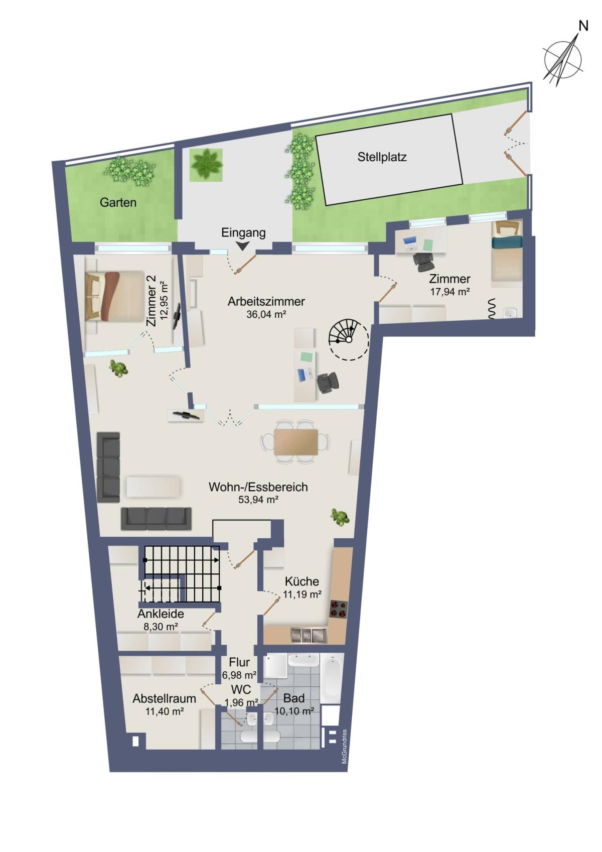 Die großzügige Wohneinheit lässt sich als Loft beschreiben und bietet mit seinen großen Räumen die Möglichkeit zur individuellen Gestaltung.