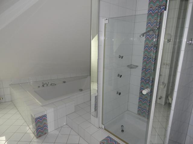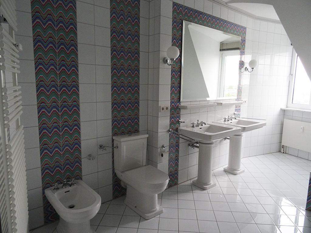 Die Wohnung verfügt über zwei hochwertig ausgestattete Badezimmer, darunter ein XL-Bad mit Badewanne, sowie ein separates Gäste-WC. Ein Ankleidezimmer mit Einbauschränken bietet zusätzlichen Komfort.