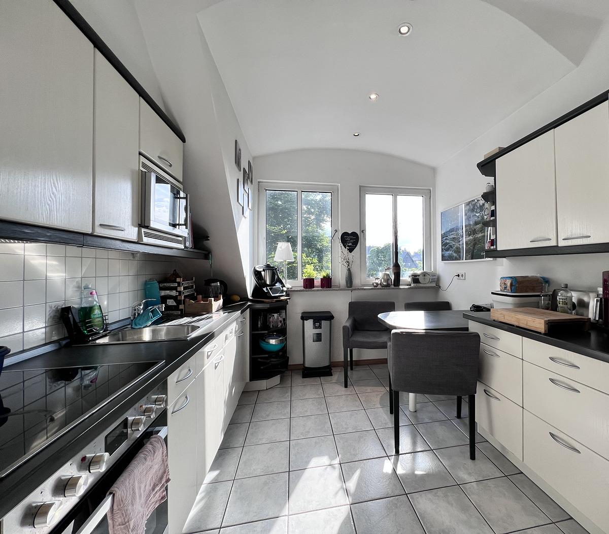 Die außergewöhnliche 6,5-Zimmer-Maisonette-Wohnung erstreckt sich über die oberen Etagen eines sehr gepflegten Mehrfamilienhauses mit nur wenigen Einheiten.