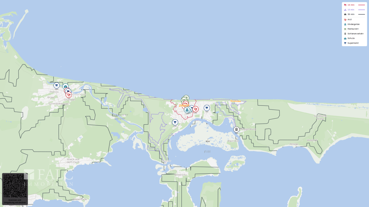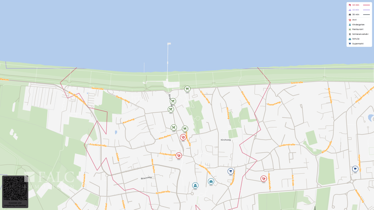 Besonders familienfreundlich zeigt sich die Umgebung durch kurze Wege zu Betreuung und Schule. Der Kindergarten Muschelsucher sowie die Regionale Schule Zingst mit Grundschule befinden sich in der Nähe. Für die Freizeit liegen mehrere Grünflächen und Spielmöglichkeiten praktisch um die Ecke, darunter der Martha Müller Grählert Park und ein Spielplatz in der Nähe. So entstehen kurze Wege für kleine Alltagsroutinen und spontane Nachmittage im Freien.