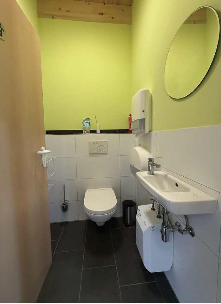 Zwei getrennte Toiletten befinden sich angrenzend zur Bürofläche. Eine weitere befindet sich mit direktem Zugang von der Halle.