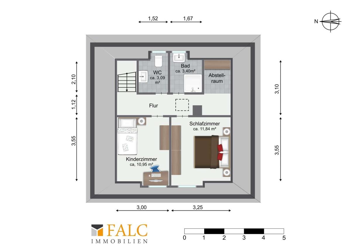 Zwei helle und großzügig geschnittene Zimmer bieten Ihnen im Dachgeschoss flexible Nutzungsmöglichkeiten als Schlaf-, Kinder-, Gäste- oder Arbeitszimmer. Ein separates WC sowie ein geräumiger Abstellraum sorgen für zusätzlichen Komfort und Ordnung.