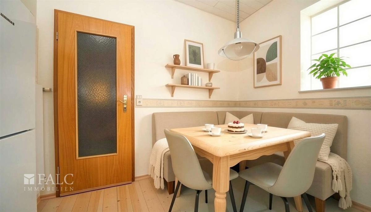 Die Küche überzeugt durch ihr großzügiges Platzangebot, sodass Vorräte und auch größere Geräte problemlos untergebracht werden können. Ob traditionelle Gerichte oder neue kulinarische Ideen – hier wird Kochen zum Vergnügen.