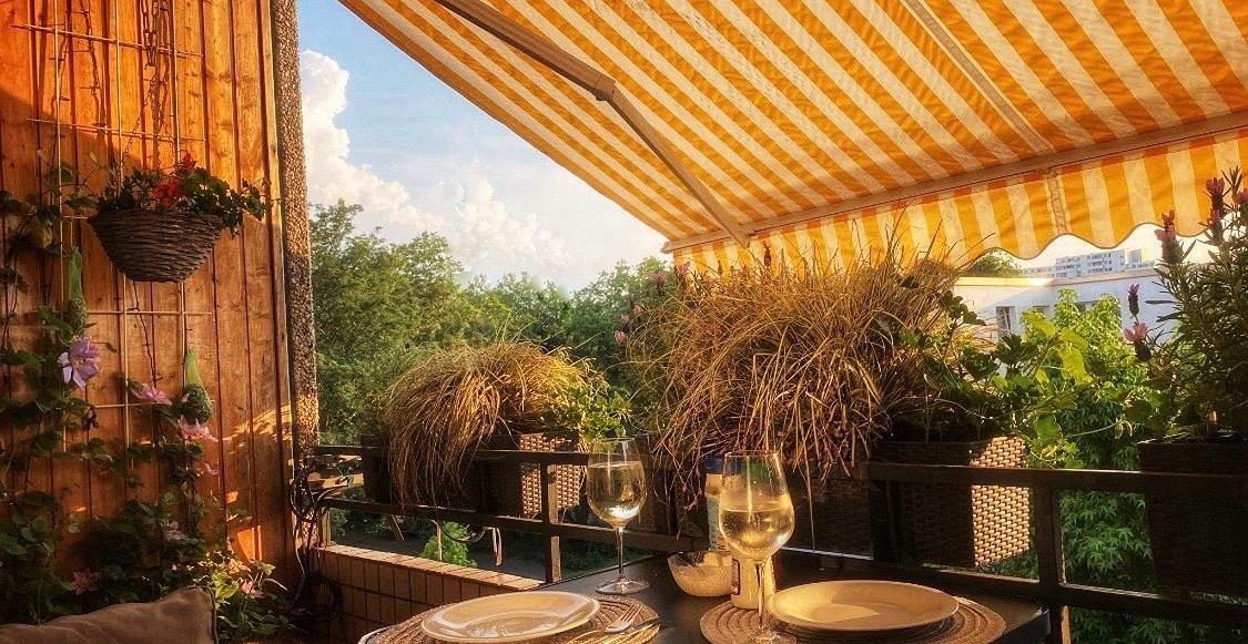 • West-Balkon: Der Balkon bietet Platz für sonnige Stunden am Nachmittag und Blick ins Grüne der angrenzenden Parkanlage. Eine hochwertige Markise ist bereits installiert.