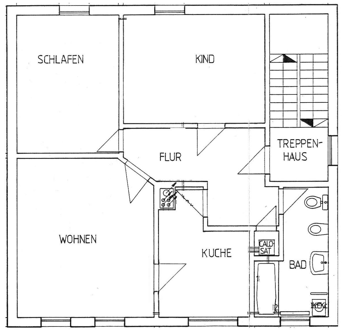 Die Wohnung besteht aus drei separaten Wohnräumen (WG-tauglich), einem Bad mit Wanne und WC, WM-Anschluss, einer unmöblierten Küche (E-Herd und Spüle ist möglich) sowie einem Flur mit kleinem Abstellraum.