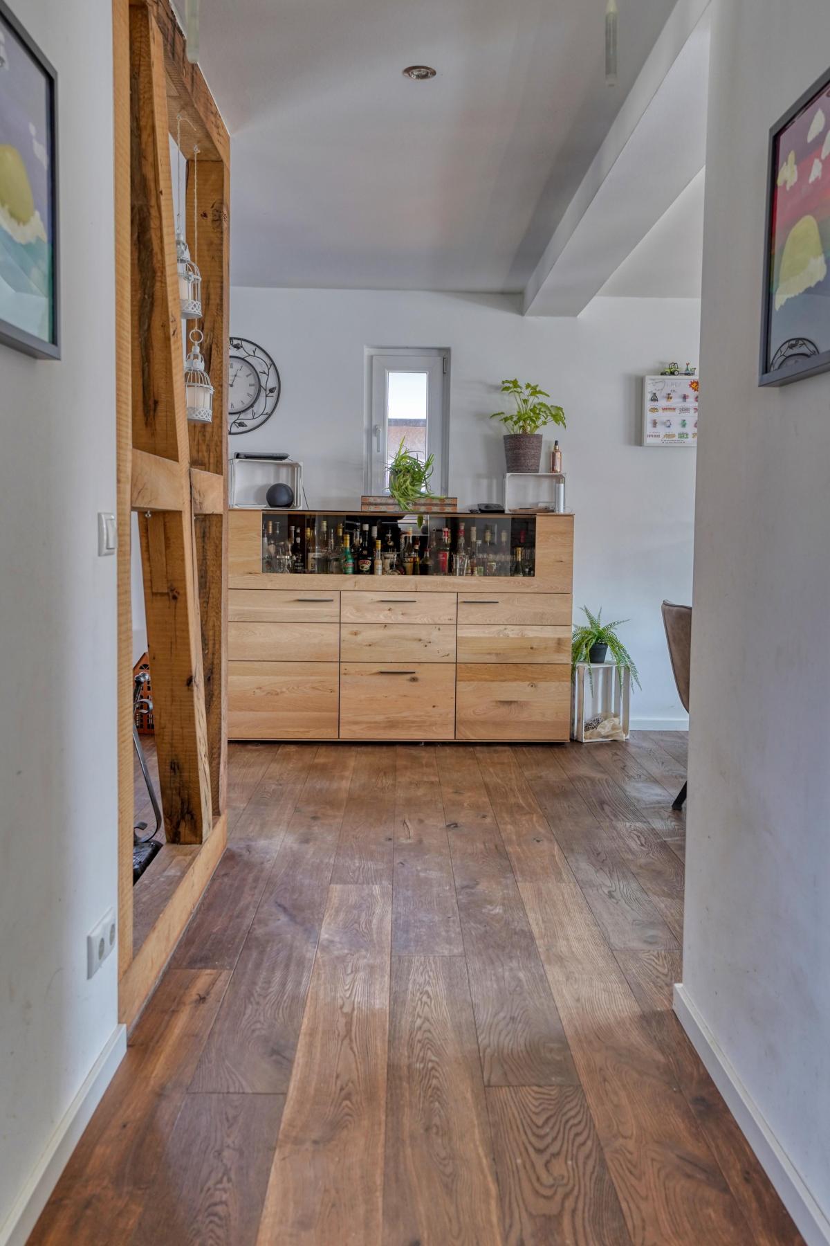 • Edle Bodenbeläge: Im Erdgeschoss erwartet Sie ein hochwertiger Echtholz-Parkettboden, der für ein warmes und exklusives Wohngefühl sorgt.