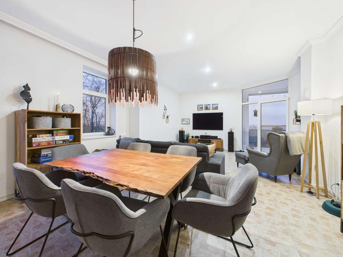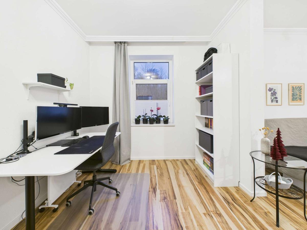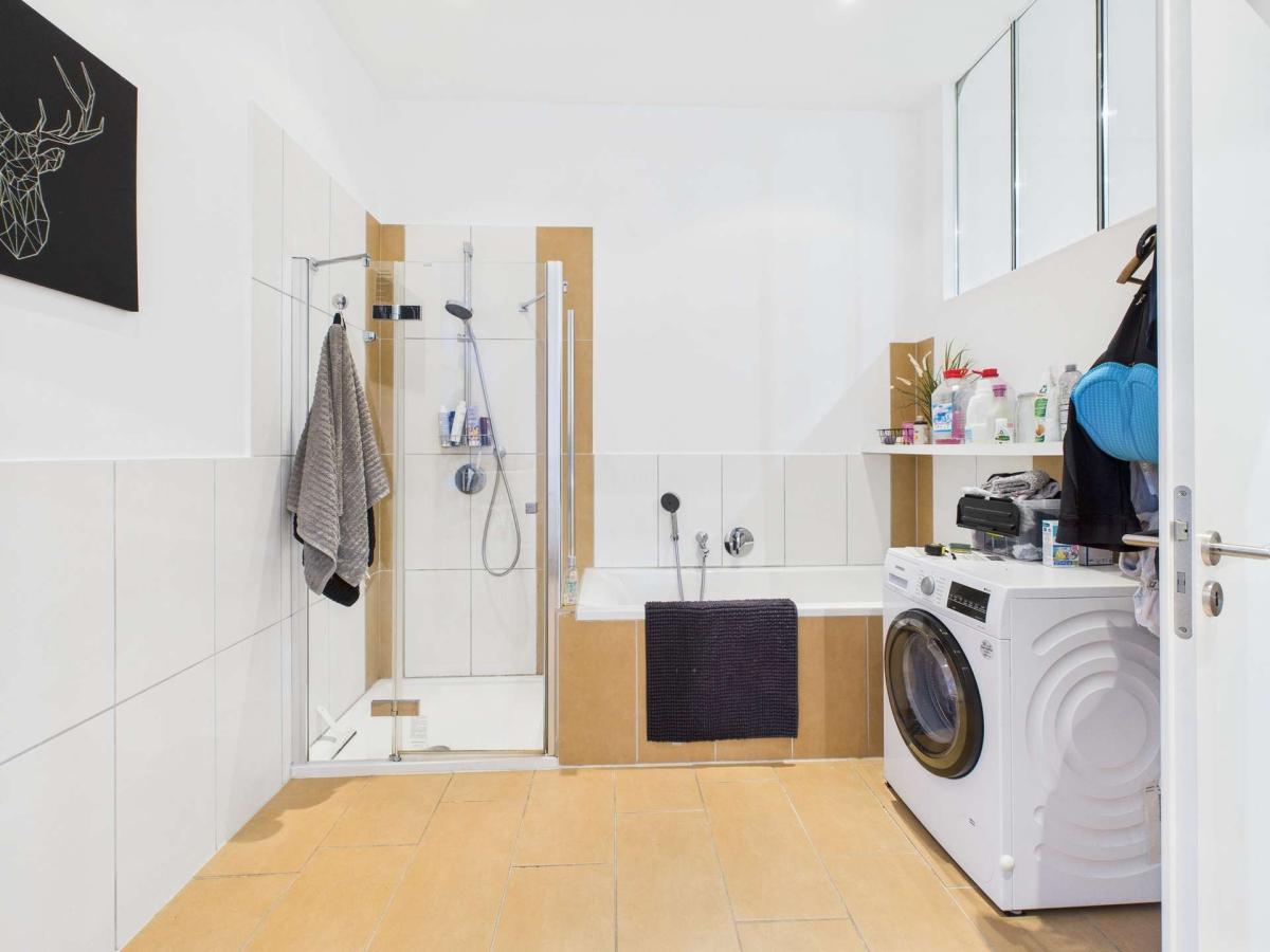 Im Erdgeschoss finden Sie eine 126 qm große drei Zimmer Wohnung mit Fußbodenheizung, Kamin und bodentiefen Fenstern. Die offene Gestaltung des Wohnzimmers und die Deckenhöhen der Zimmer von 3,10 m lassen die Wohnung hell und modern wirken. Der Wohn- und Essbereich verfügt über große bodentiefe Fenster, die einen Weitblick über die Natur garantieren. Zur Wohnung gehört eine Souterrain-Wohnung im Untergeschoss, die eine Fläche von 50 qm umfasst und einen direkten Zugang zum eigenen Garten gewährleistet.