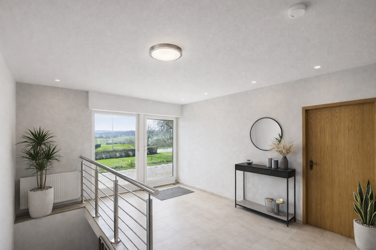 Beim Betreten des Bungalows gelangt man in einen einladenden Eingangsbereich, von dem aus alle Zimmer erreichbar sind. Das geräumige Wohnzimmer mit großen Fenstern lässt viel Tageslicht herein und bietet genügend Platz für gemütliche Stunden mit Familie und Freunden. Die 4 Schlafzimmer sind hell und freundlich gestaltet und bieten viel Platz für individuelle Einrichtungsideen.