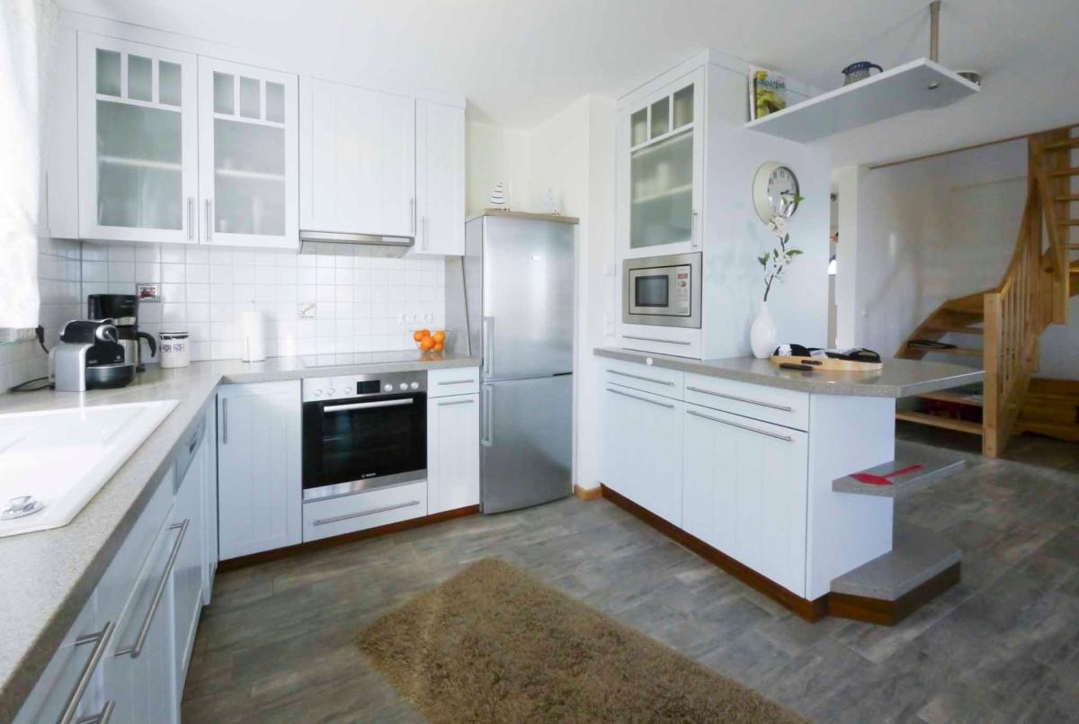 Im Inneren überzeugt das Haus durch seine hochwertige Möblierung, eine maßgefertigte Landhausküche vom Schreiner sowie einen eleganten Speckstein Kamin, der dem Wohnbereich eine besonders behagliche Atmosphäre verleiht. Für zusätzliche Entspannung sorgt die Infrarotsauna, die im großen Badezimmer integriert wurde.