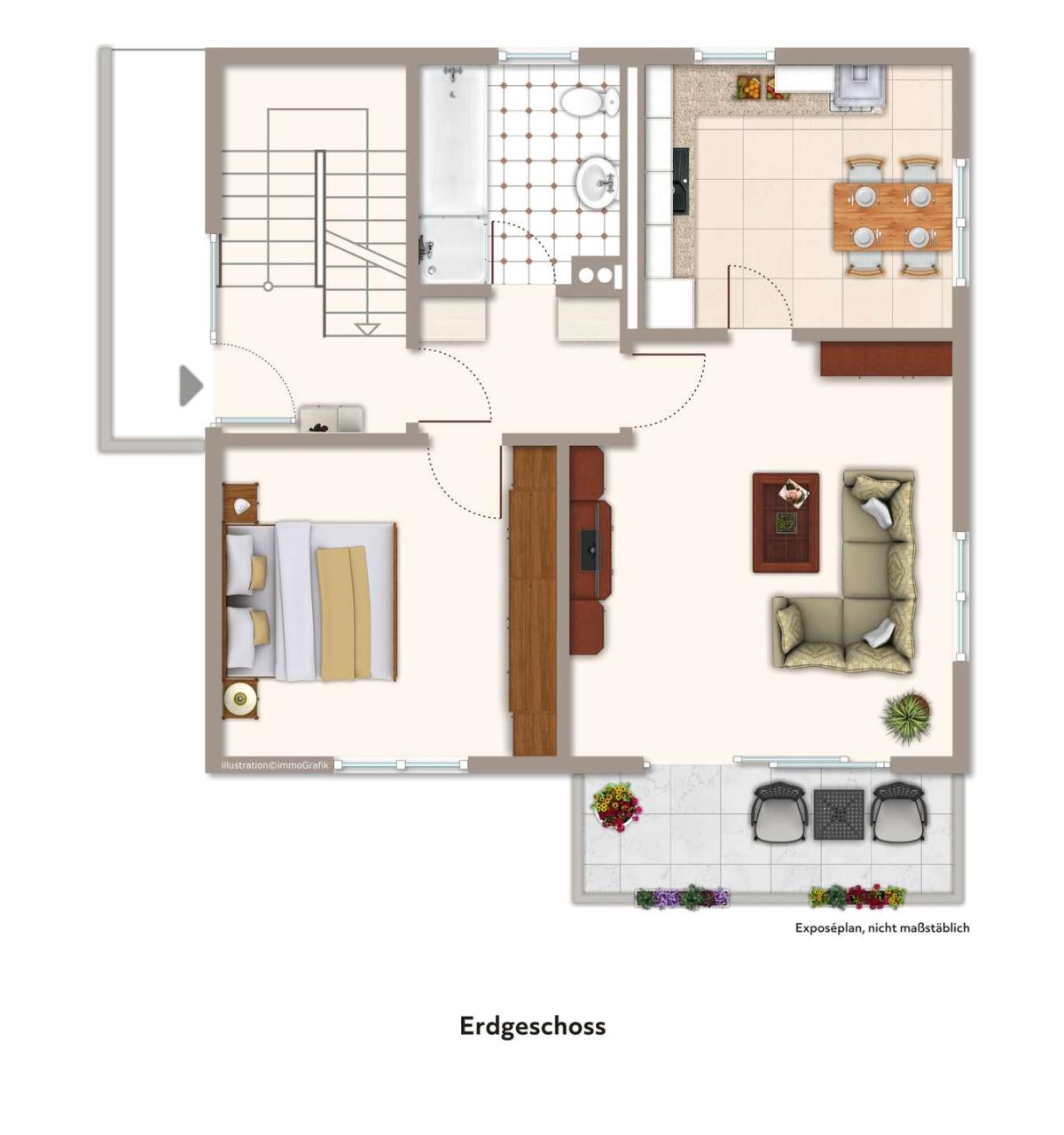 - 4 Zimmer, Küche, Bad mit Dusche und Wanne, Gäste-WC