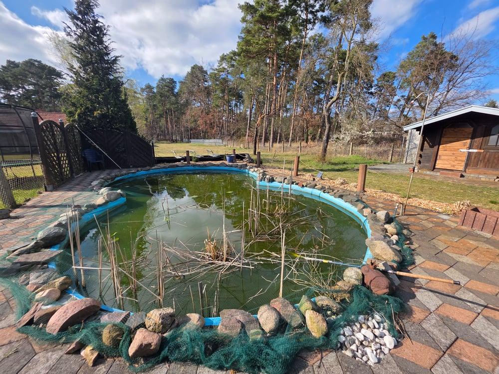 Das vollständig eingezäunte Grundstück mit 2.563 m² bietet außergewöhnlich viel Raum und eine durchdachte Aufteilung: Der gepflasterte Hof empfängt mit einem Dreiercarport sowie einem elektrisch betriebenen Torantrieb. Im Nebengebäude befindet sich eine Sommerküche; eine separate Garage im hinteren Grundstücksbereich ergänzt die Fahrzeugunterbringung. Ein charmantes Sommerhäuschen lädt zum Verweilen ein, und ein Spreewaldkahn am eigenen Teich dient als stimmungsvoller Sitzplatz – ein echter Blickfang. Brunnen und Grundwasserpumpe (Grundfos) bewässern das gesamte Grundstück autark und zuverlässig.