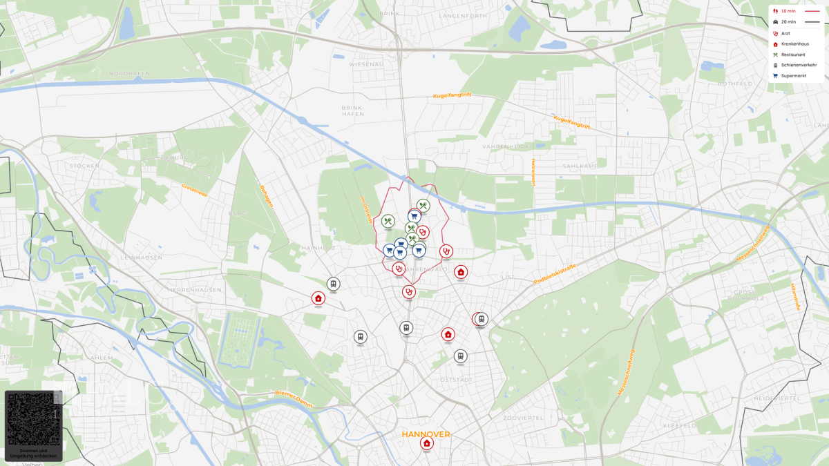 Die Wohnung liegt in einem gewachsenen Wohnumfeld im Norden Hannovers und verbindet kurze Wege im Alltag mit einer sehr guten Anbindung. Einkauf, Gastronomie, Freizeit und medizinische Versorgung sind in der direkten Umgebung vorhanden, sodass vieles bequem ohne Auto erledigt werden kann.