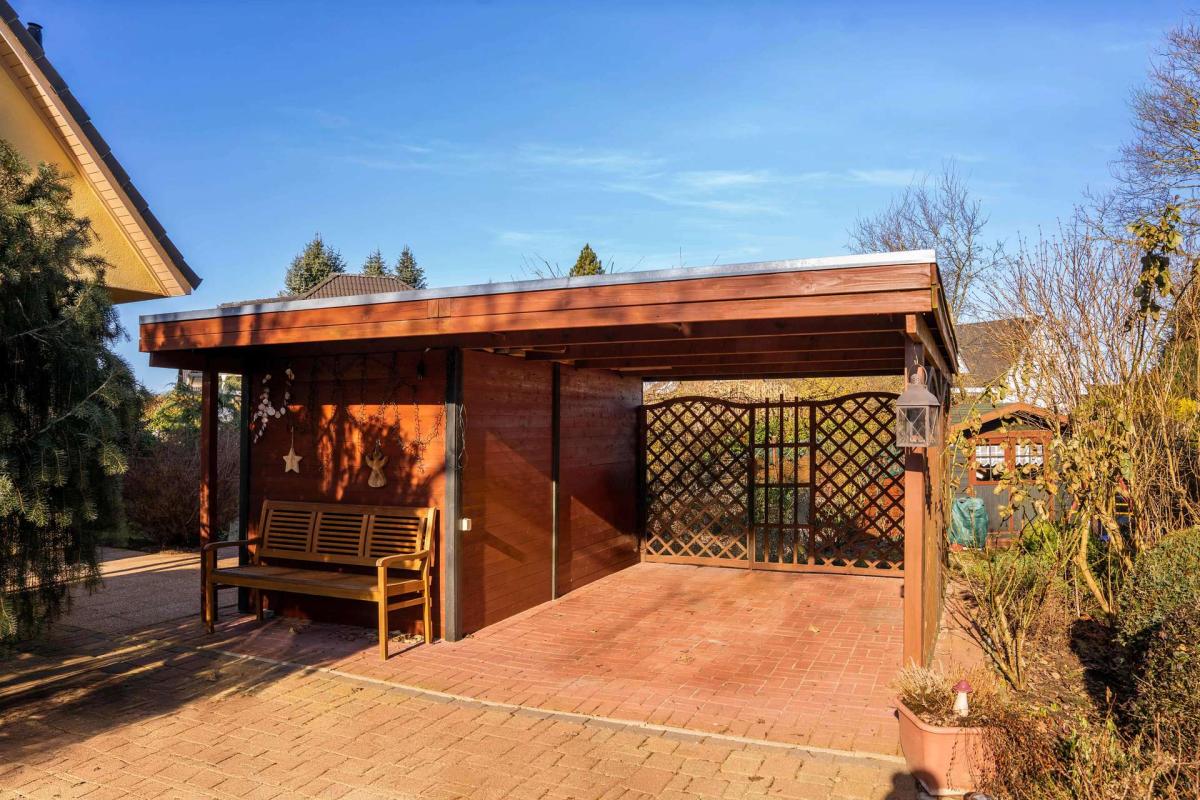 Der offene Wohn- und Essbereich bildet das Herzstück des Hauses. Große, bodentiefe Fenster schaffen eine angenehme Verbindung zwischen Innen und Außen und lassen viel Tageslicht herein. Von hier aus gelangt man direkt auf die sonnige Terrasse. Der Garten präsentiert sich als ruhiger Rückzugsort – ein Ort zum Entspannen, Genießen oder für gesellige Stunden im Freien. Ein kleines Gartenhäuschen bietet zusätzlichen Stauraum oder Raum für Hobbys, während das Carport eine praktische und stilvolle Ergänzung darstellt.